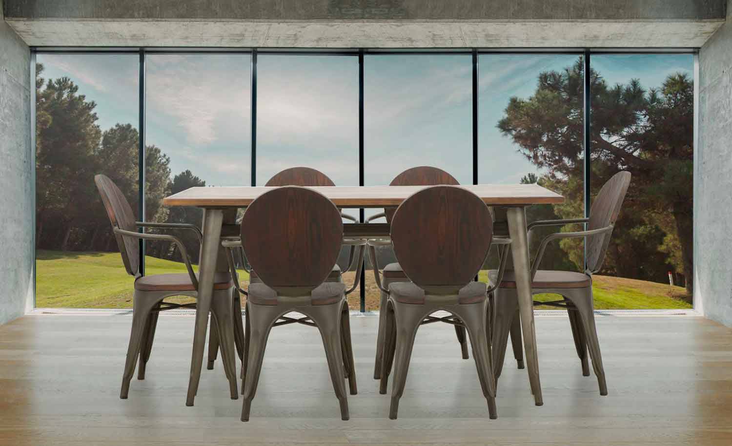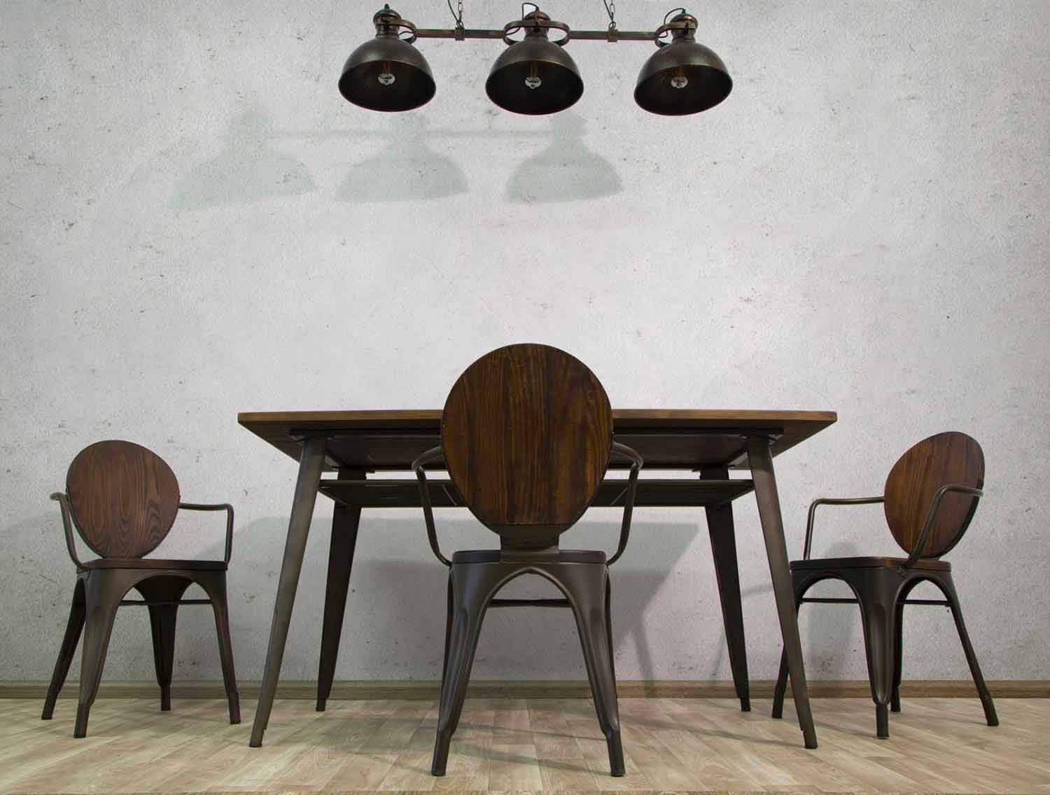 Stuhl im Industriestil mit modernem Design aus Eisen und Holz
