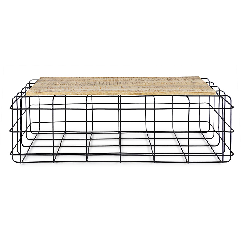 Rechteckiger Couchtisch aus Stahl und Mangoholz, Industriedesign.