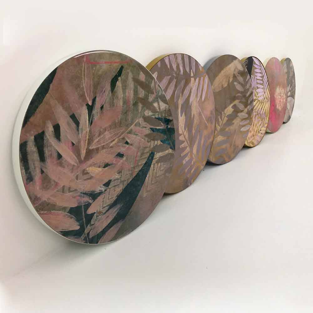 Ein Gemälde, das aus Meditation und einer Reise stammt, physisch in Indien, aber auch und vor allem in sich selbst. Die für das Gemälde ausgewählten Farben sind die primären. Sie werden zusammengemischt, um jedes Mal die gewünschte Farbe zu erzeugen. In einem Spiel mit Schattierungen und Oberflächen erzählen diese Bilder die Zeit in zwei Dimensionen: die vergangene Zeit und die magische Zeit der Meditation. Gemälde kombiniert mit häufig verwendeten Einrichtungsgegenständen wie Kaffeetischen verleihen Ihrem Wohnzimmer eine magische und einzigartige Note.