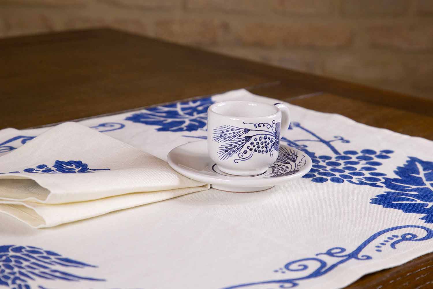Italienischer Hndgefertigtes Frühstücksservierset Handabdruck auf alten Stoffen