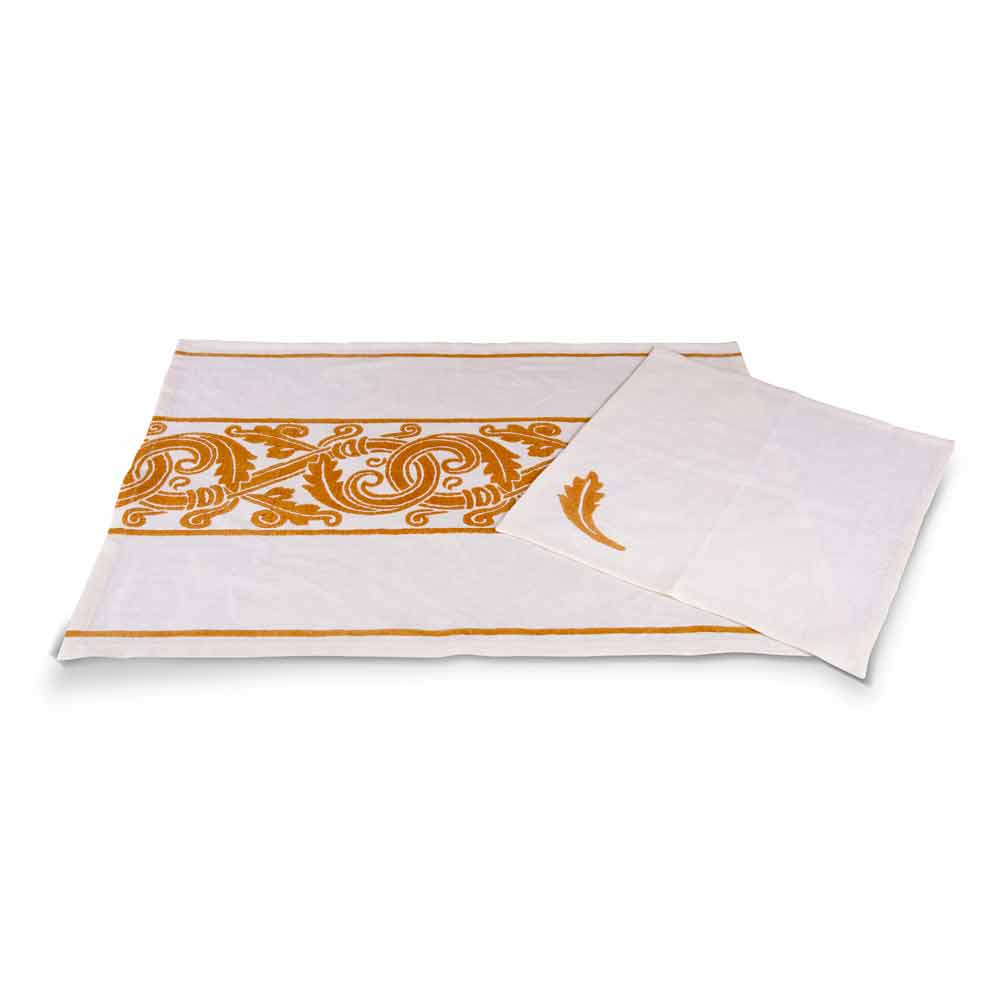 Handgemachtes Frühstücksserviceaccessoire (Tischdecke und Tischserviette) aus reinem Leinen mit künstlerischem Aufdruck auf handdekorierten antiken Stoffen, erhältlich in drei Varianten, ein einzigartiges Stück Qualität, hergestellt in Italien.