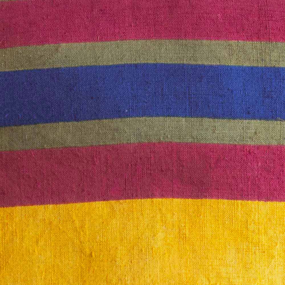 - Oberstoff : 100% altes Hanfgewebe, handgewebter Webstuhl. Das typische Merkmal dieses alten und kostbaren Stoffes ist die Unregelmäßigkeit der Textur.