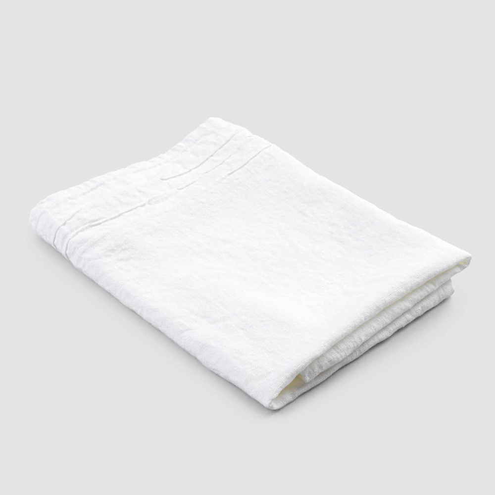 Der Wert der Tradition verbindet den modernen Lebensstil mit dem weißen Badetuch aus schwerem Leinen mit einem genähten Faltenrand.