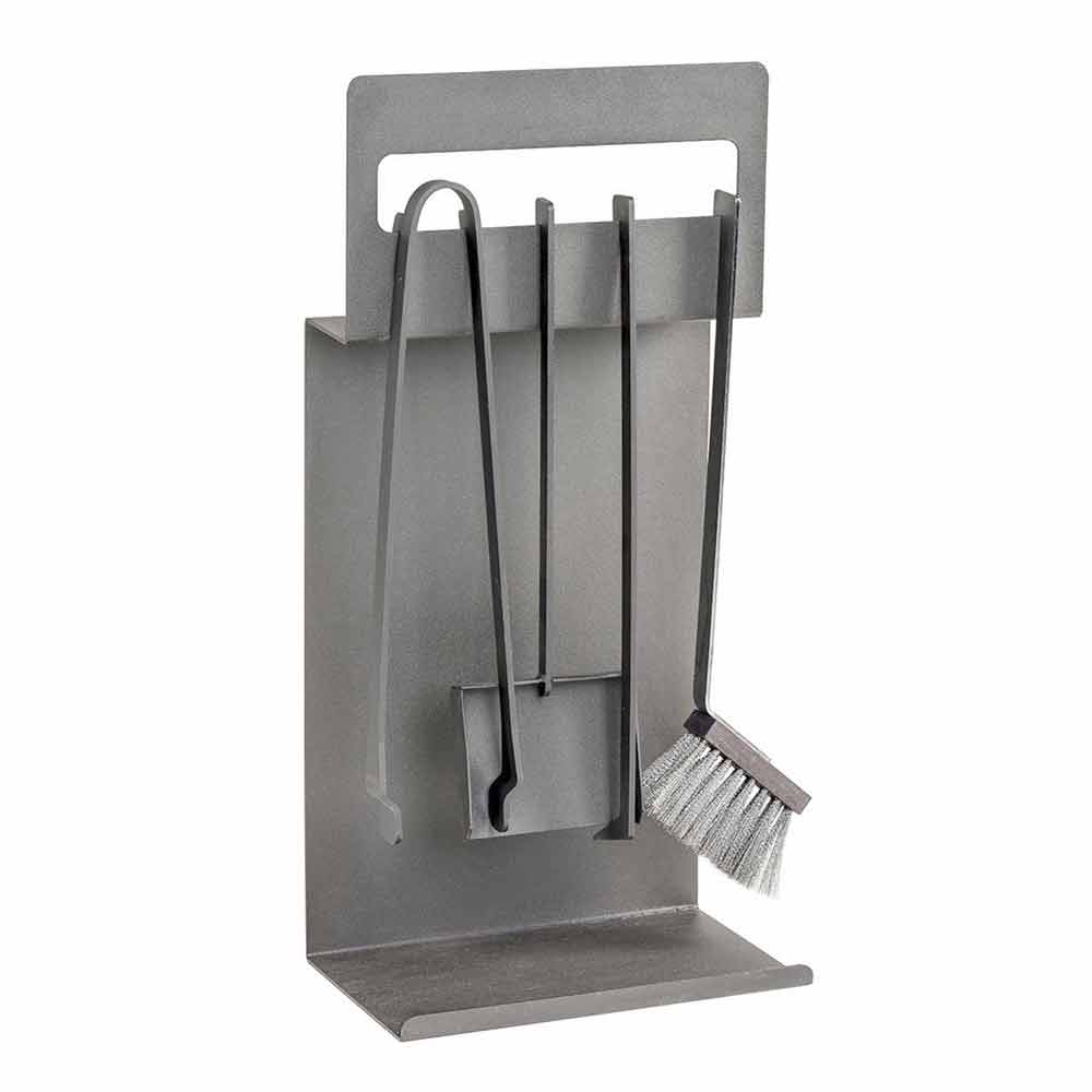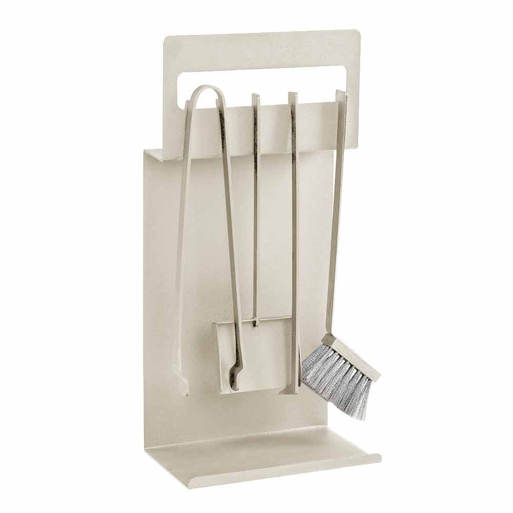 Kaminzubehör auspulverbeschichtetem Stahl mit hochwertiger, ungiftiger Farbe, vollständig in Italien hergestellt . Dieses Möbelstück ist unentbehrlich, um es mit dem Holzscheithalter zu kombinieren, da es mit vier verschiedenen Arten von Werkzeugen ausgestattet ist, die für die Wartung des Feuers und die Reinigung des Kamins nützlich sind: eine Zange , eine Schaufel , eine Klemme und ein Besen . Sein modernes und elegantes Design unterstreicht die Schönheit des Kamins und die Einrichtung des Raumes, in dem er sich befindet, dank seiner geometrischen und harmonischen Linien, die es ermöglichen, ihn in verschiedenen Umgebungen zu verwenden, um einen Hauch von Originalität zu verleihen .