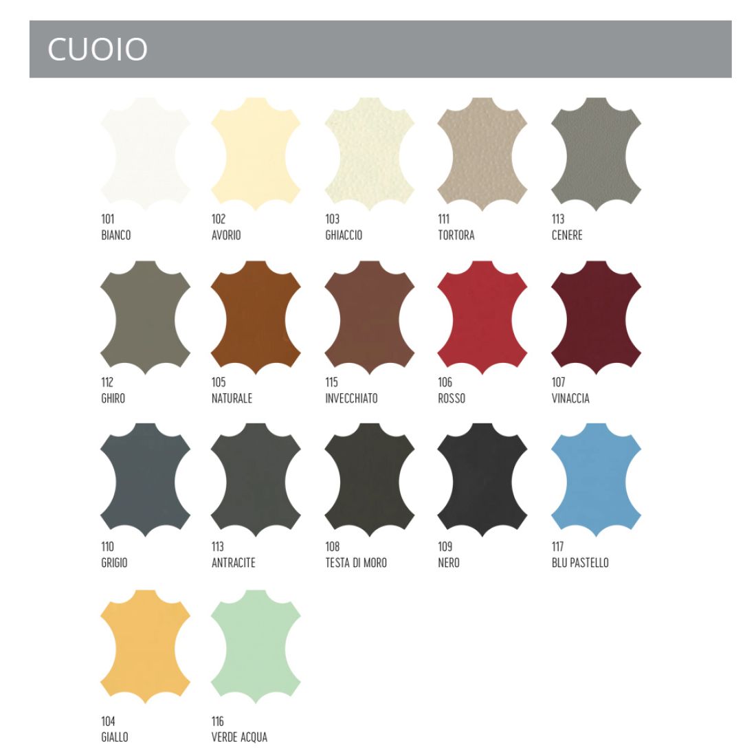 Sehen Sie sich die Farbkarte für die gewünschte Lederart an und geben Sie den von Ihnen gewählten Farbcode in das entsprechende Feld ein.