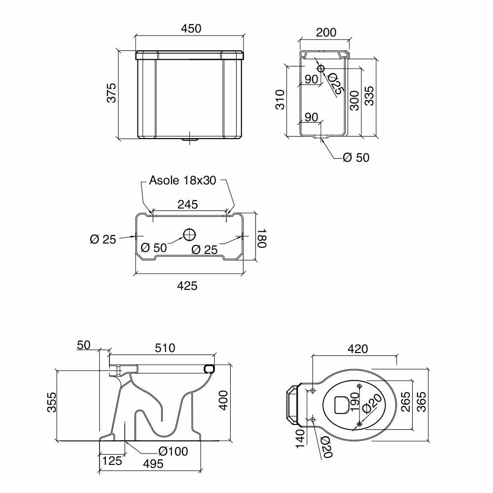 Bodenstehendes WC im klassischen Stil mit hoher weißer Marwa-Keramikbox, hergestellt in Italien.