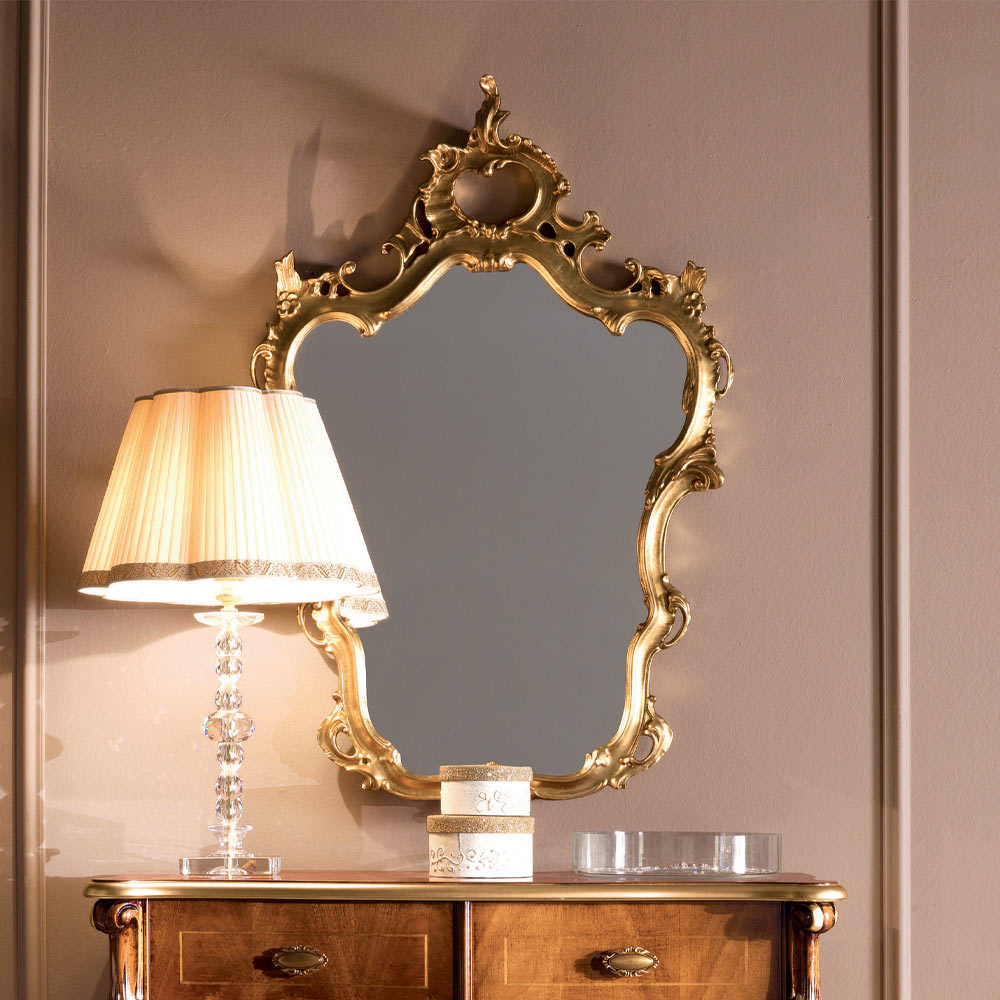 Spiegel im klassischen Stil mit geformtem Rahmen, der mit Blattgold veredelt ist, ideal, um jede Umgebung mit Persönlichkeit und Originalität zu dekorieren. Eine einzigartige und raffinierte Ergänzung, die vollständig in Italien von erfahrenen Handwerksmeistern hergestellt wird, Meister der Kunst, die jede Ergänzung mit Weisheit und Geschmack für Eleganz vervollständigen. Die Herstellung erfolgt unter Verwendung hochwertiger Materialien und mit der größten Sorgfalt und Professionalität, die die Produkte Made in Italyauszeichnet .