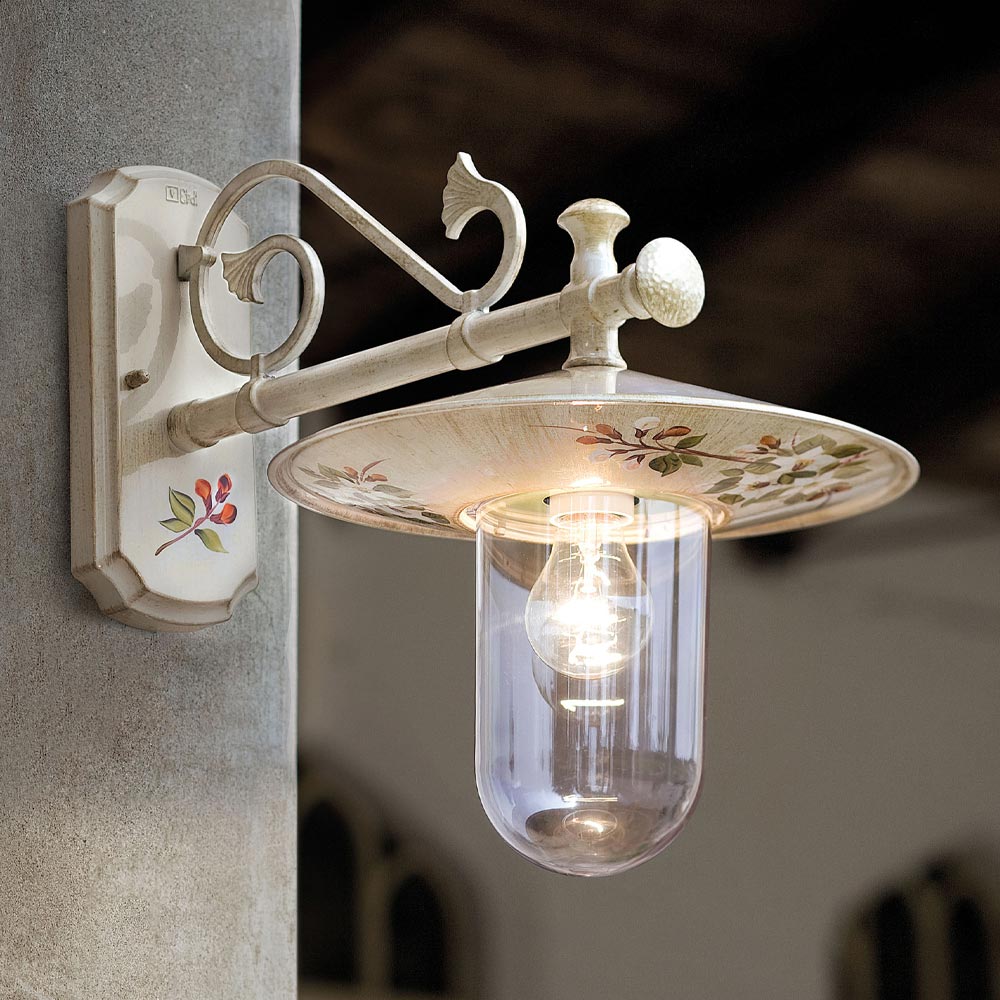 Diese Garten - Wandleuchte besteht vollständig aus Aluminium mit einem handgemalten Blumendekor für einen klassischen und harmonischen Stil zwischen Form und Farbe.