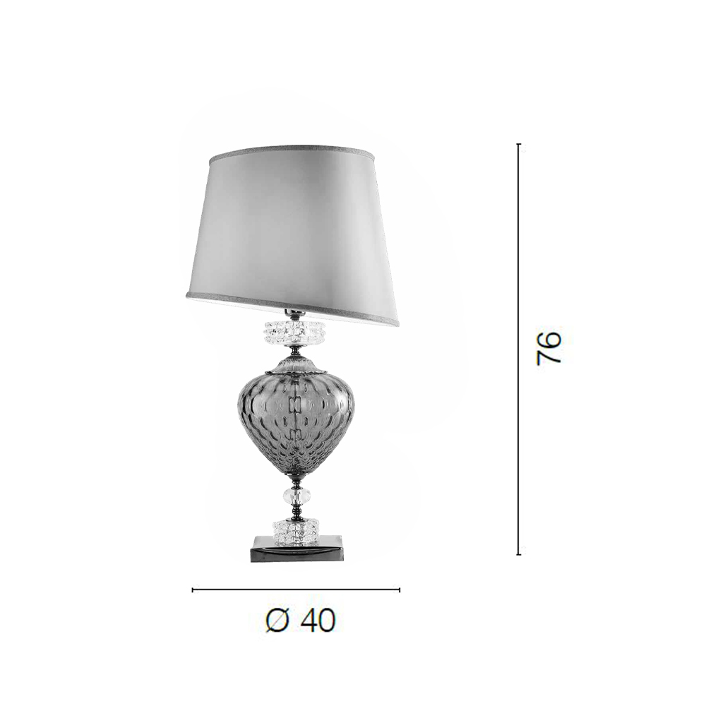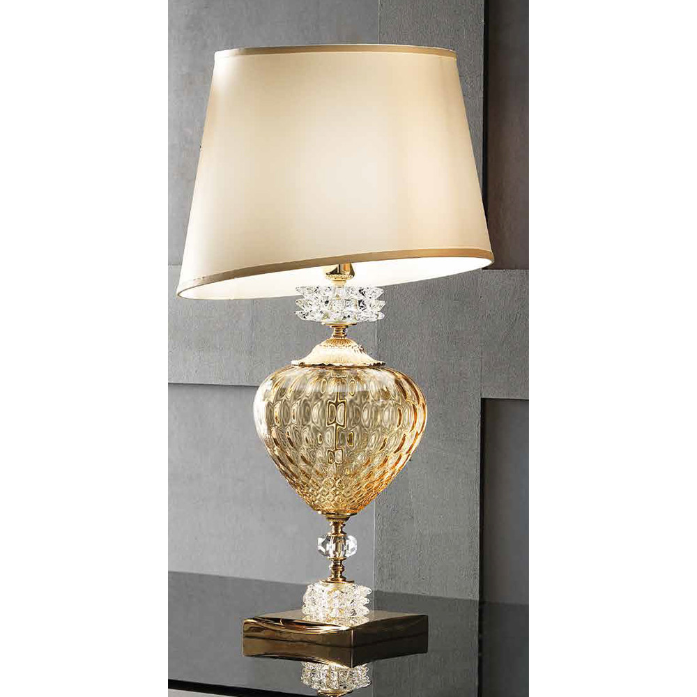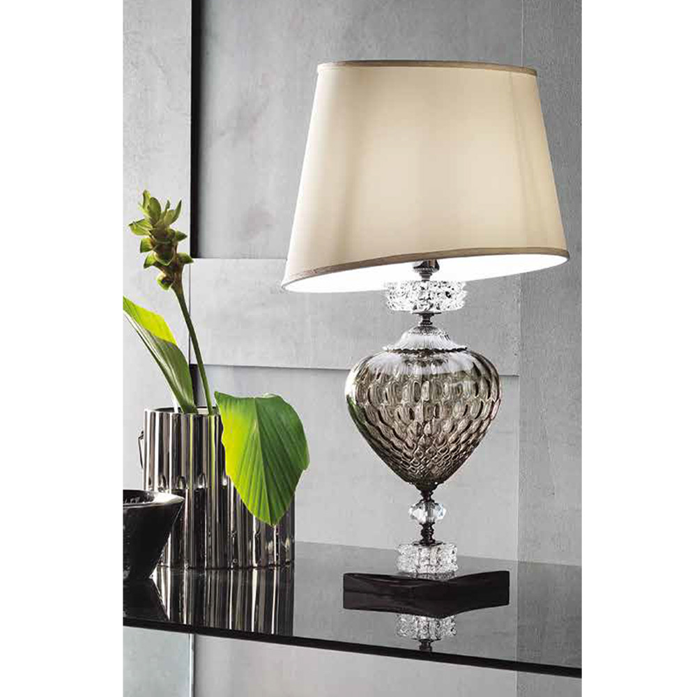 Tischlampe aus handgefertigtem Glas und Metall mit Lampenschirm, italienischer Luxus.