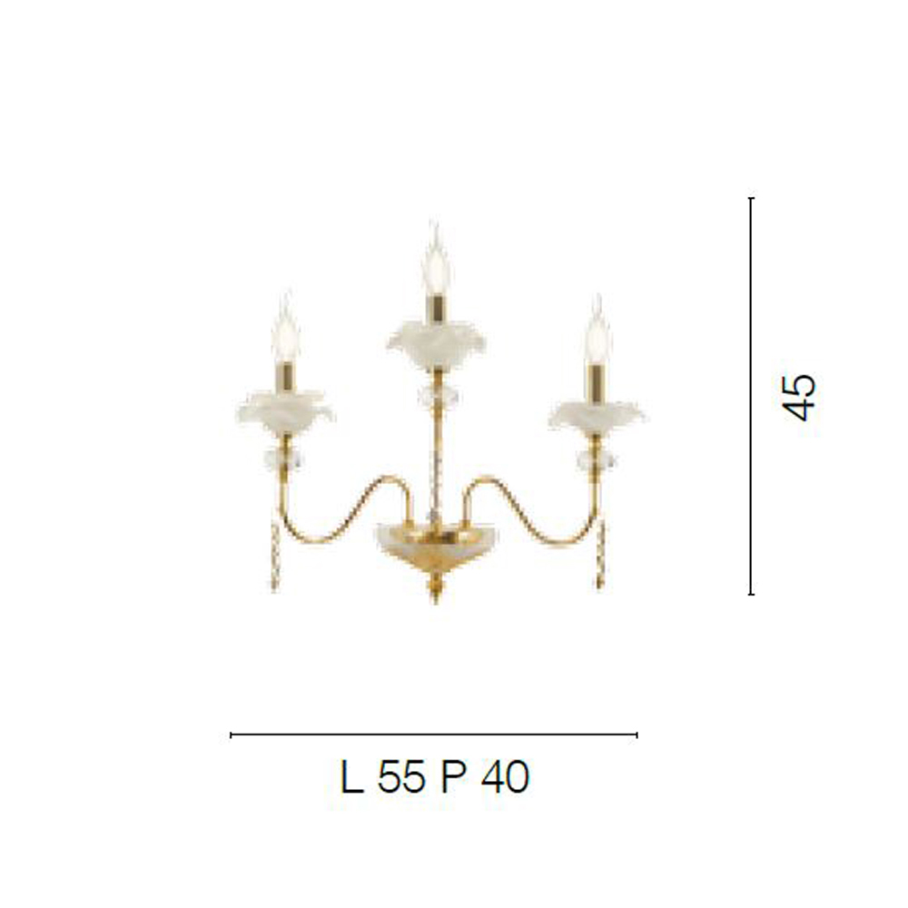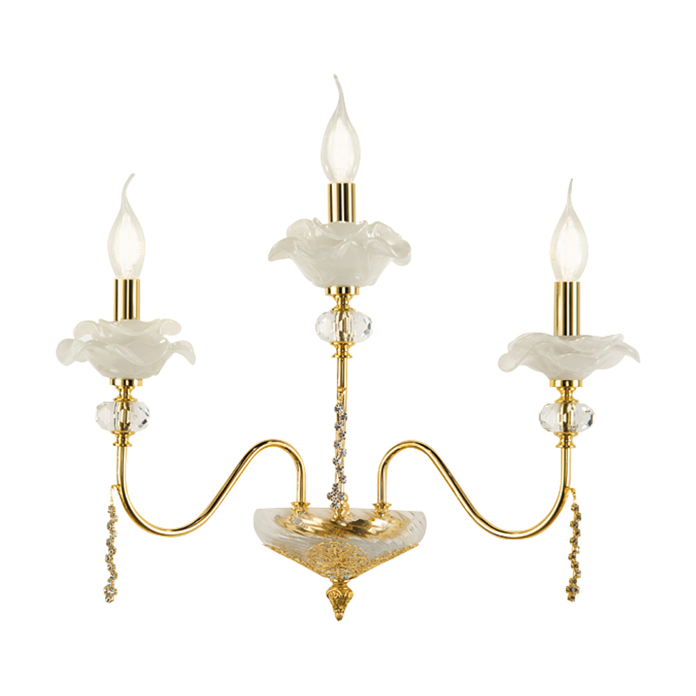 3-Licht-Wandlampe aus handgefertigtem Glas mit Knospen und Kristalltropfen, Luxus made in Italy.