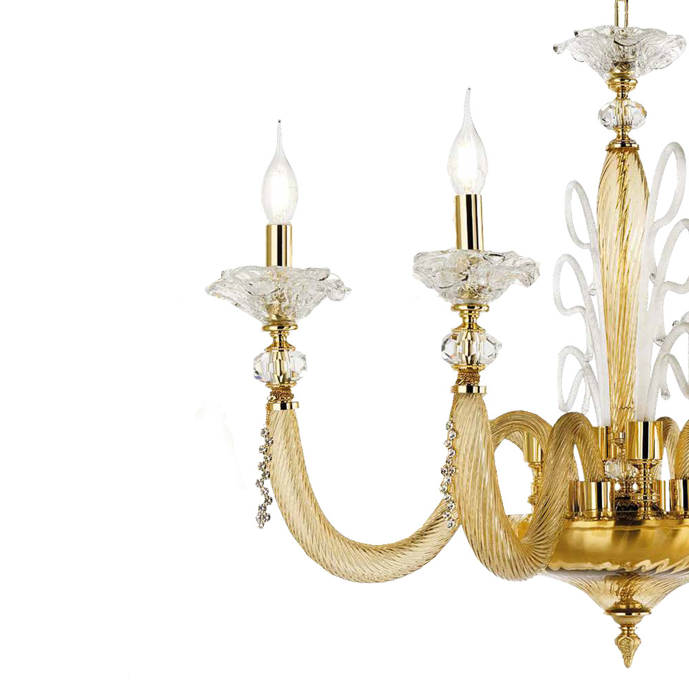 Klassischer 6-flammiger Kronleuchter aus mundgeblasenem Glas mit floralen Details - Bluminda