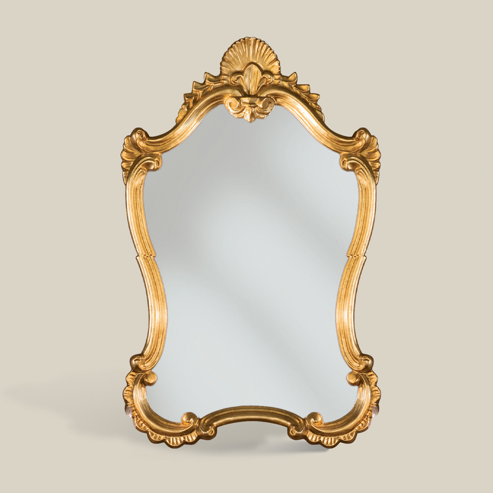 Spiegel im klassischen Stil aus Blattgold mit geformtem Rahmen Made in Italy.