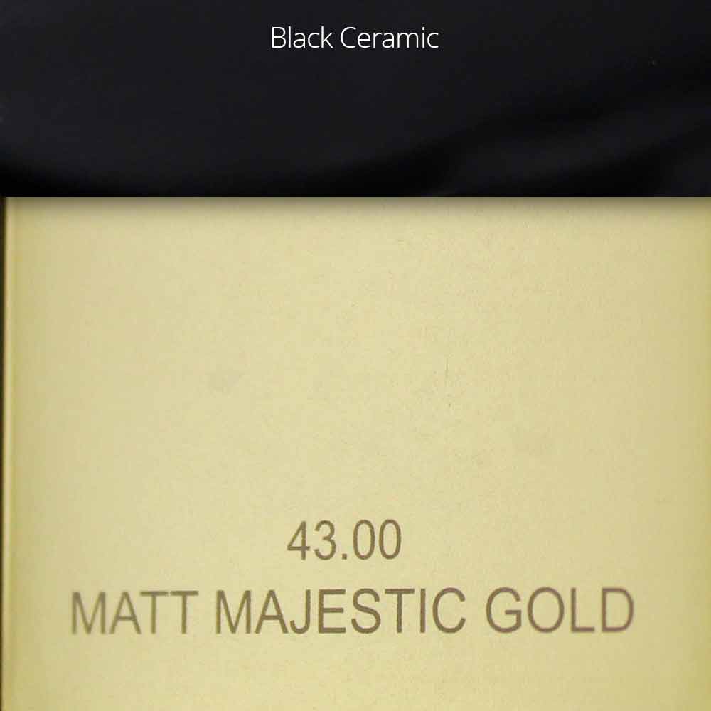 Matt Majestic Gold: Mattes 13-Gold-Finish mit schwarzen Keramikeinsätzen an den Griffen;