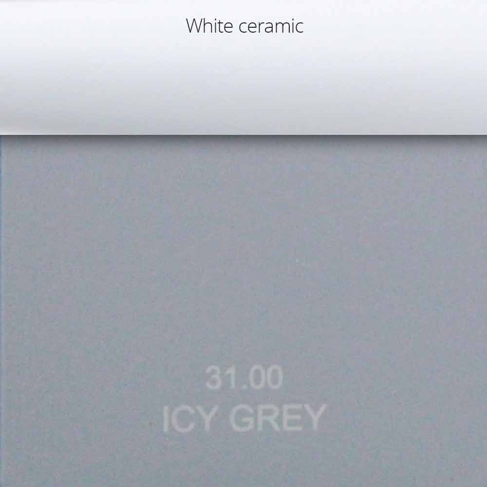 Eisgrau: mattes kaltes hellgraues Finish mit weißen Keramikeinsätzen an den Griffen;