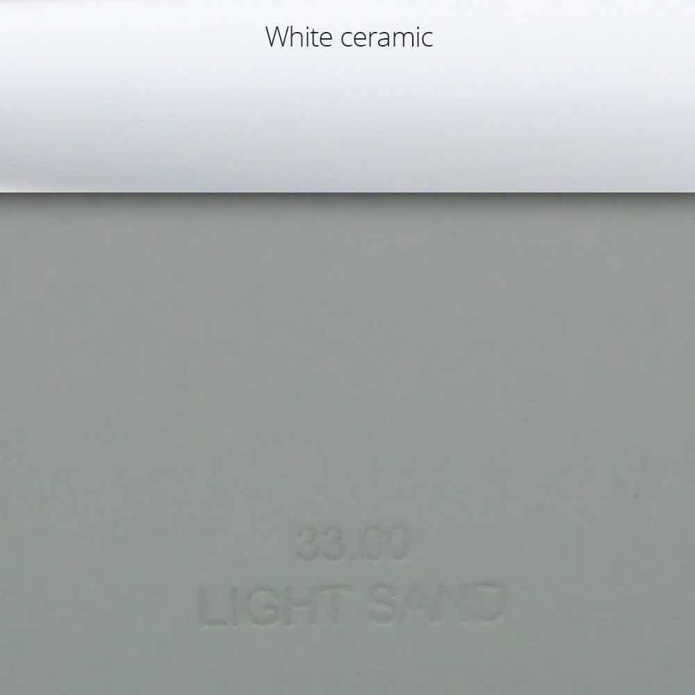 Leichter Sand: opakes warmes hellgraues Finish mit weißen Keramikeinsätzen an den Griffen;
