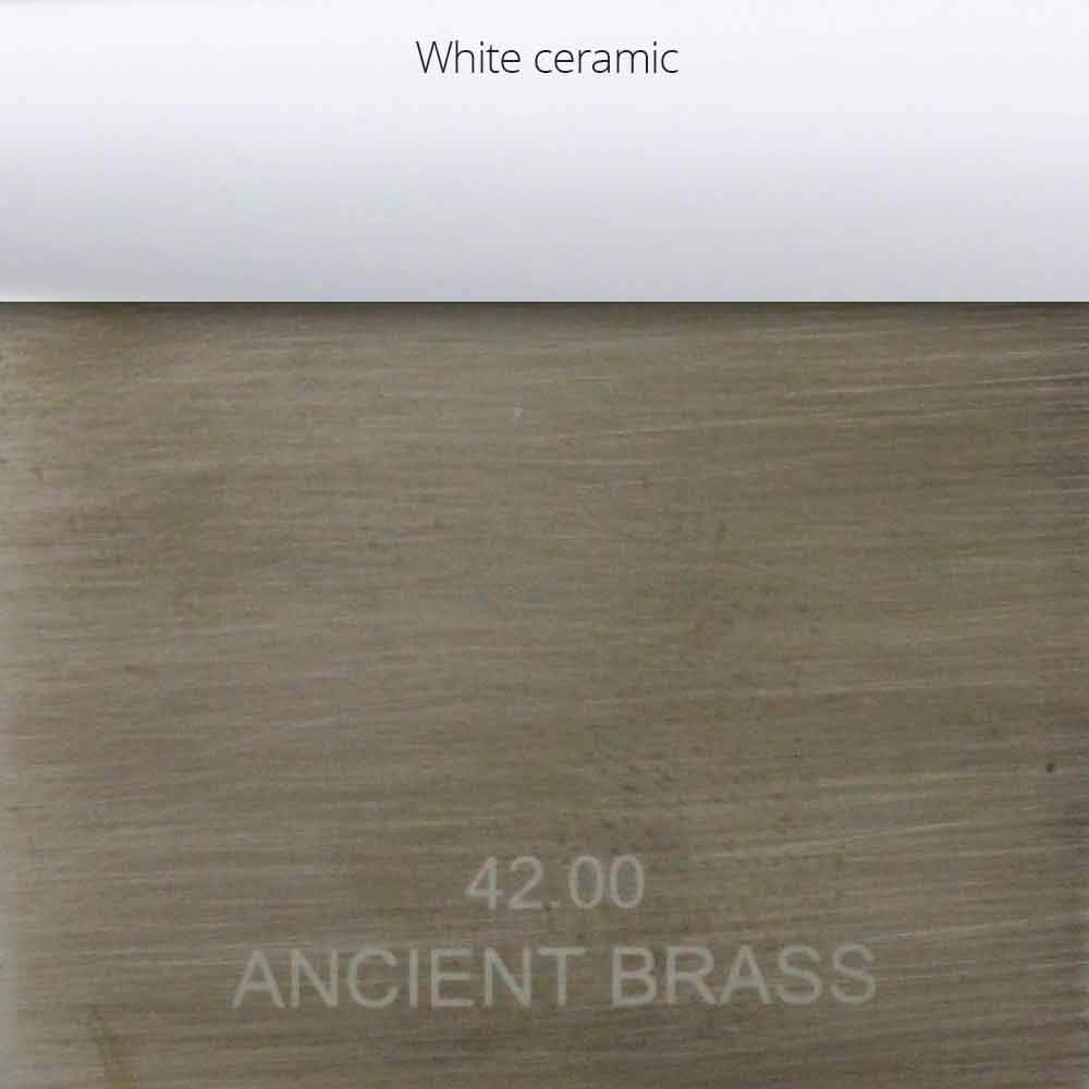 Altes Messing: matt gebürstetes antikes Messingfinish mit weißen Keramikeinsätzen an den Griffen;