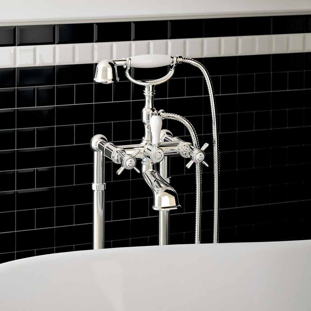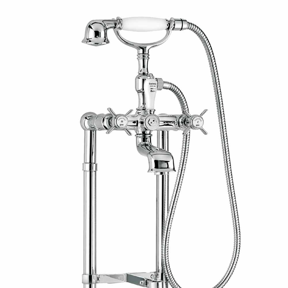 Externe Badarmatur an Bodensäulen mit Umstellung und Duplexdusche Made in Italy.