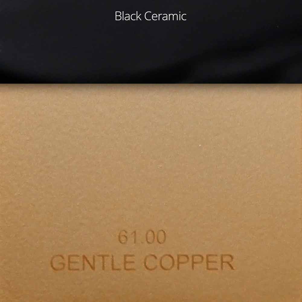 Sanftes Kupfer: mattes helles Kupfermetallic-Finish mit schwarzen Keramikeinsätzen an den Griffen;