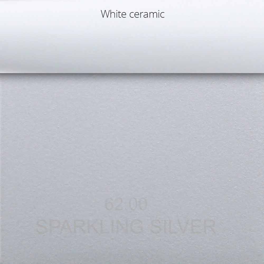 Sparkling Silver: Metallic-Finish in mattem Silber mit weißen Keramikeinsätzen an den Griffen;