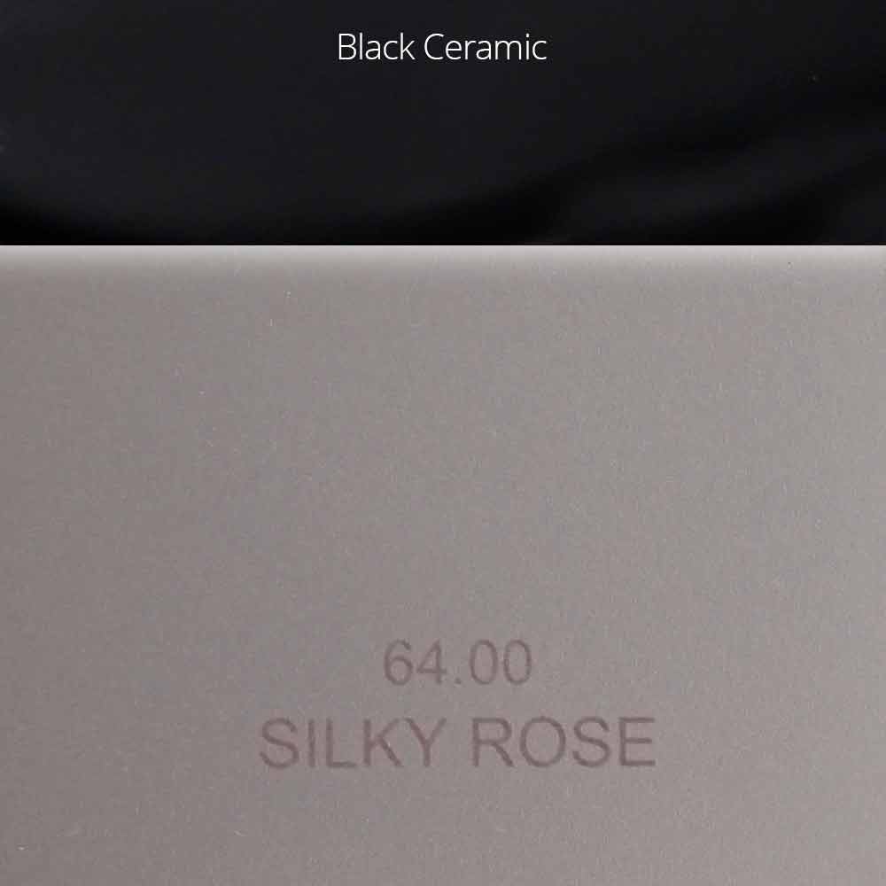 Silky Rose: Mattrosa Metallic-Finish mit schwarzen Keramikeinsätzen an den Griffen;