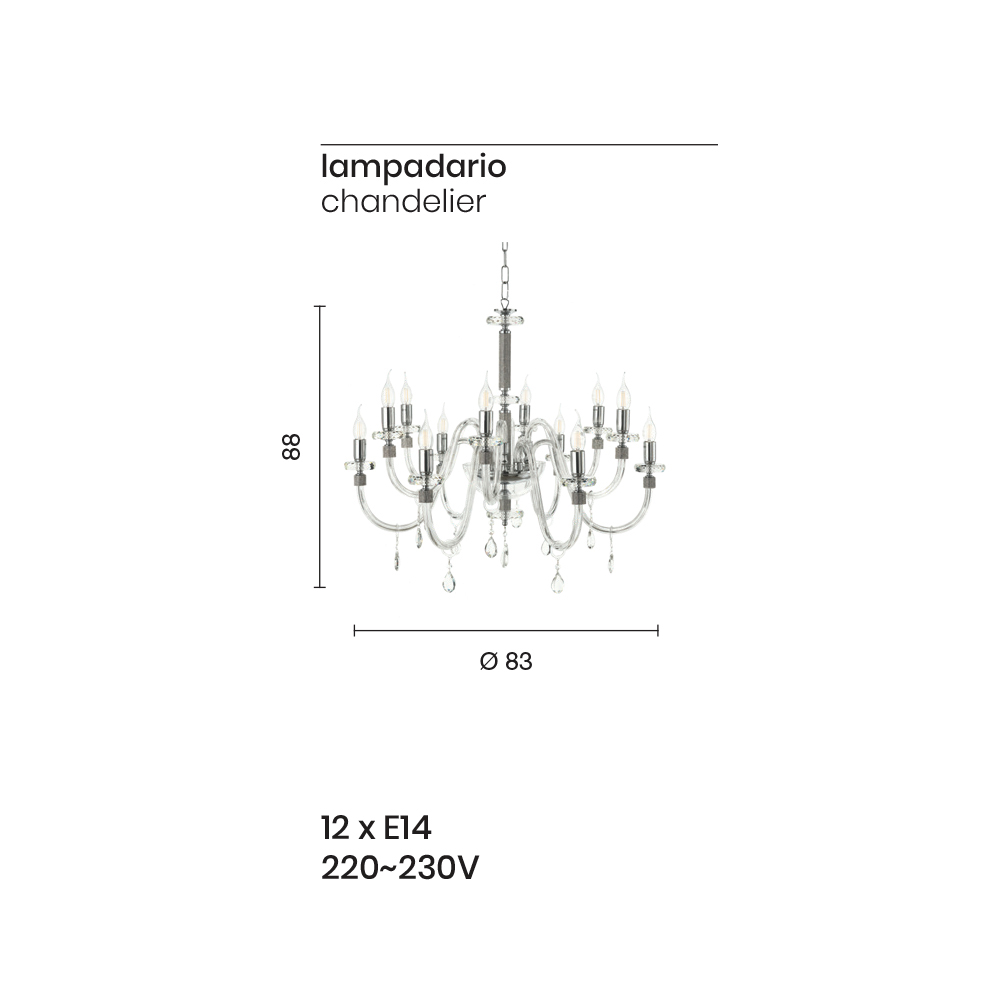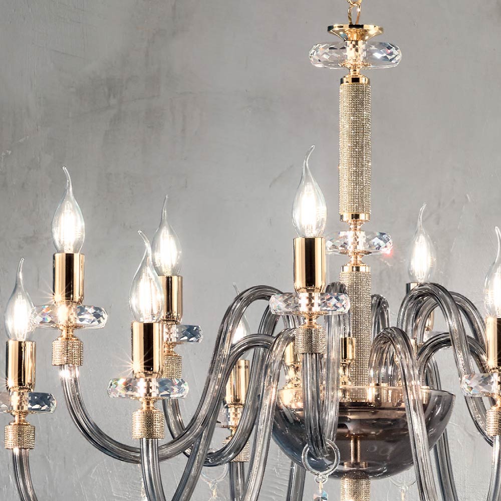 Klassischer Kronleuchter 12 Lichter aus italienischem handgefertigtem Glas - Similo