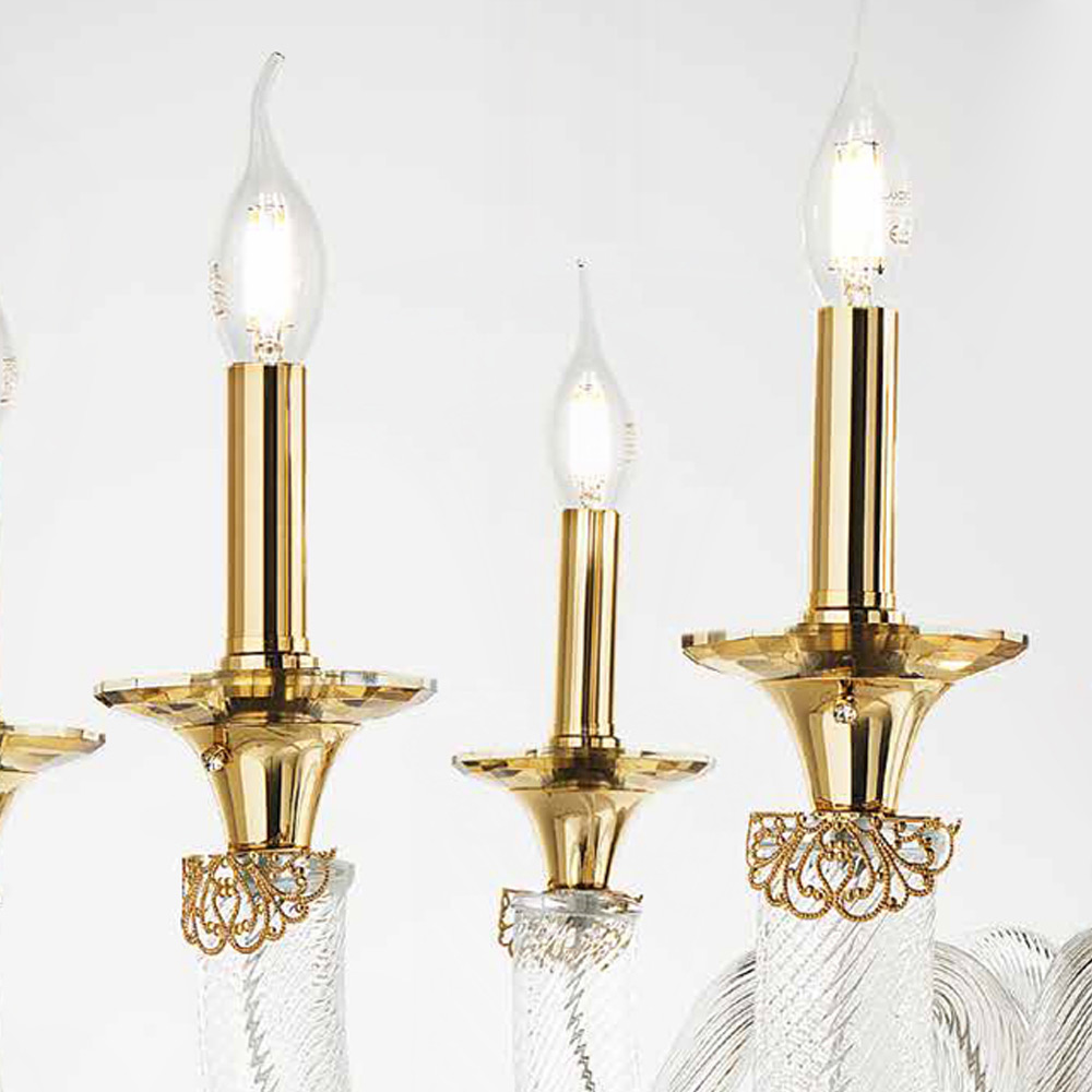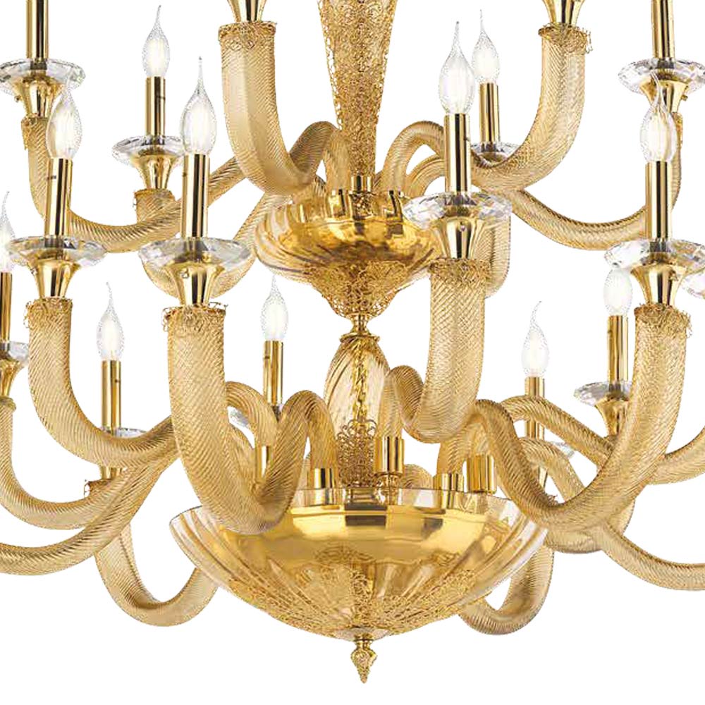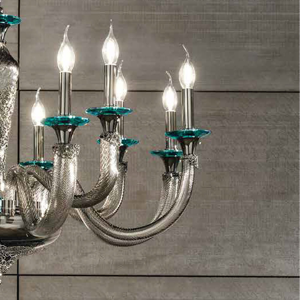 Kronleuchter mit 18 Lichtern aus handgefertigtem Glas und Kristallen, italienischer Luxus.