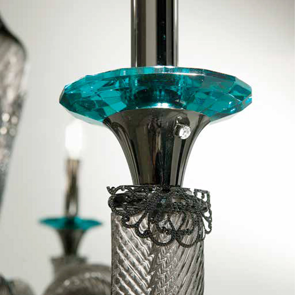 - Körper aus Rauchglas - Details aus türkisfarbenem Glas - brüniertes Metall;