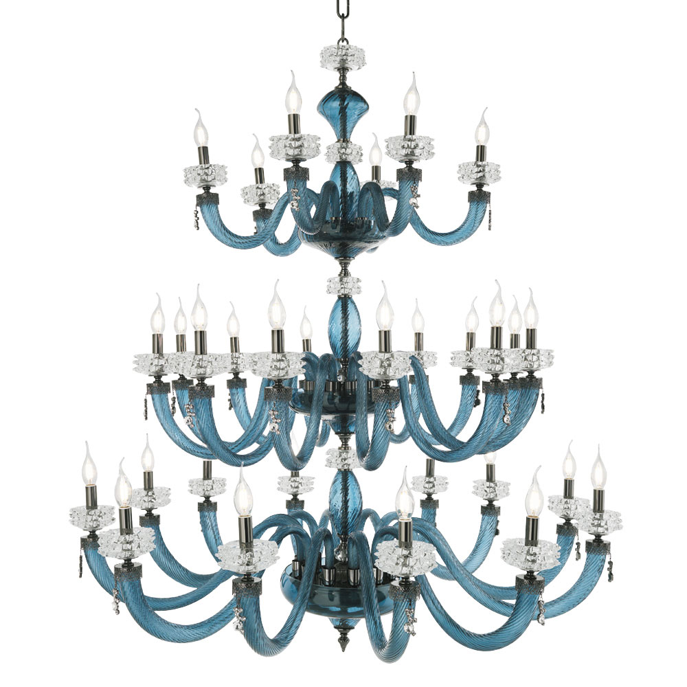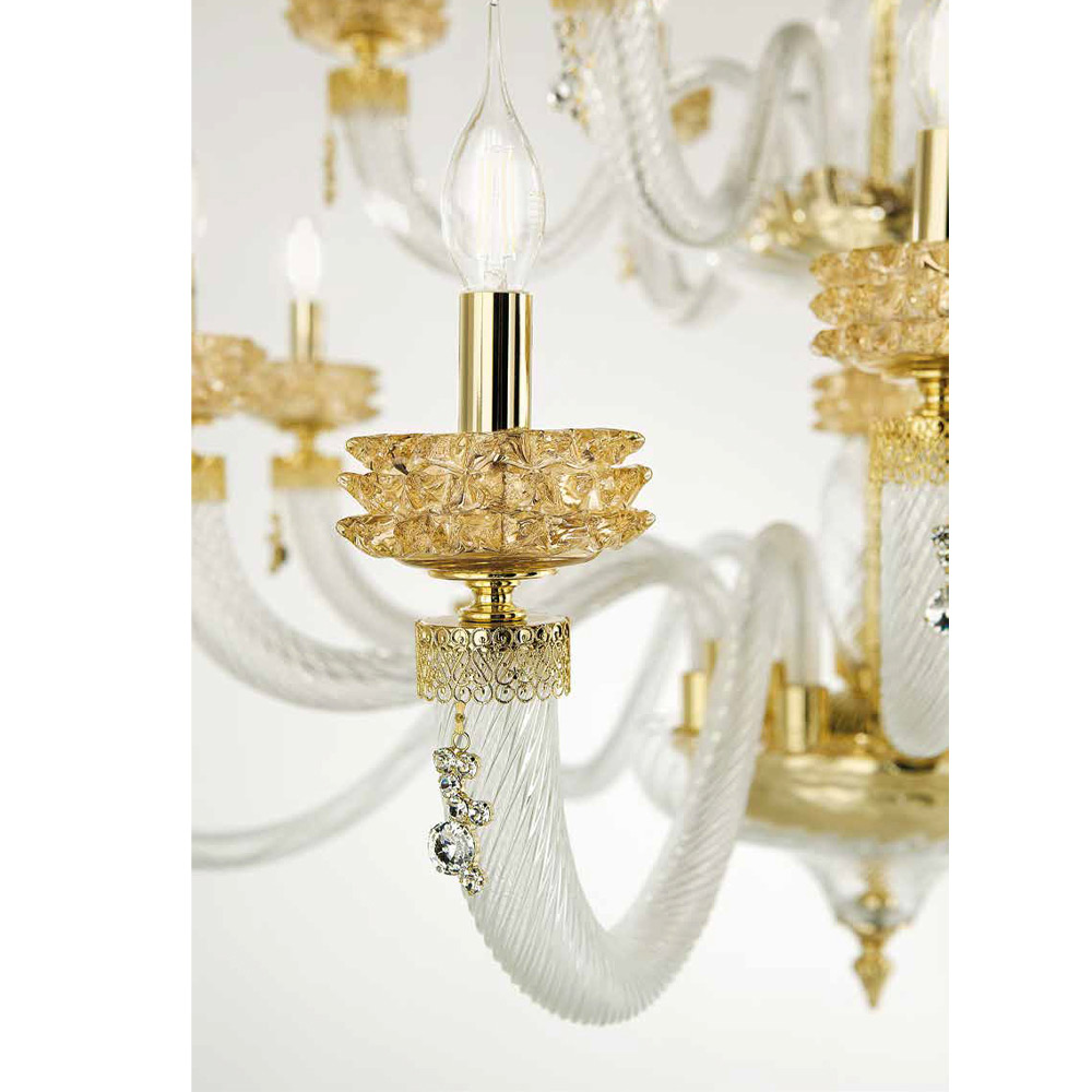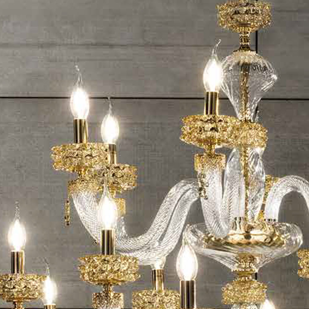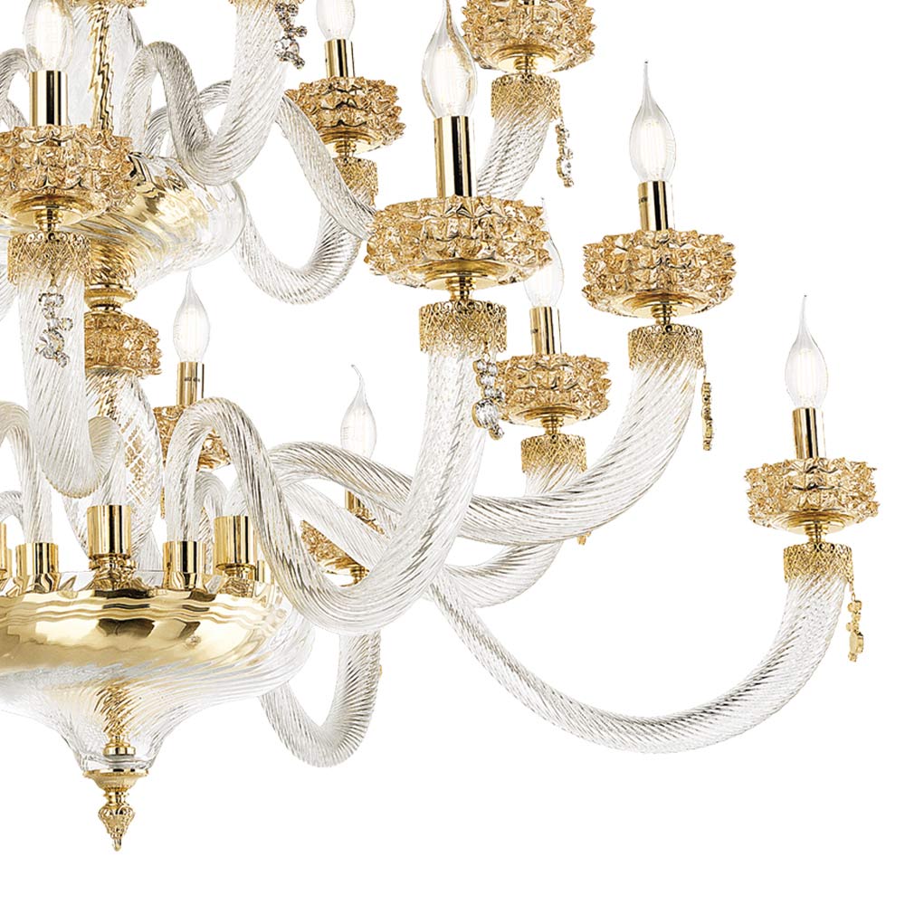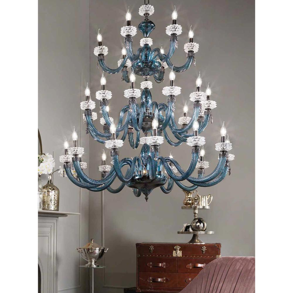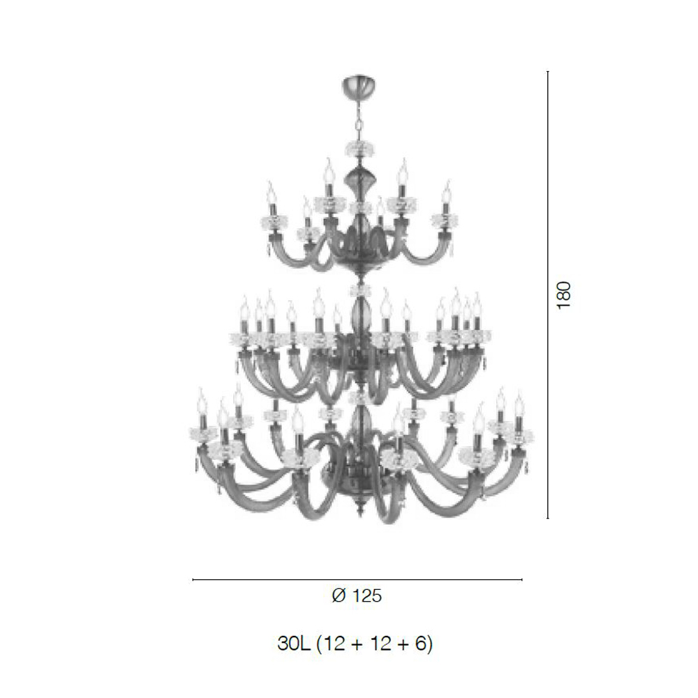 Kronleuchter mit 30 Lichtern aus handgefertigtem Glas und Metall, italienisches Luxusdesign.