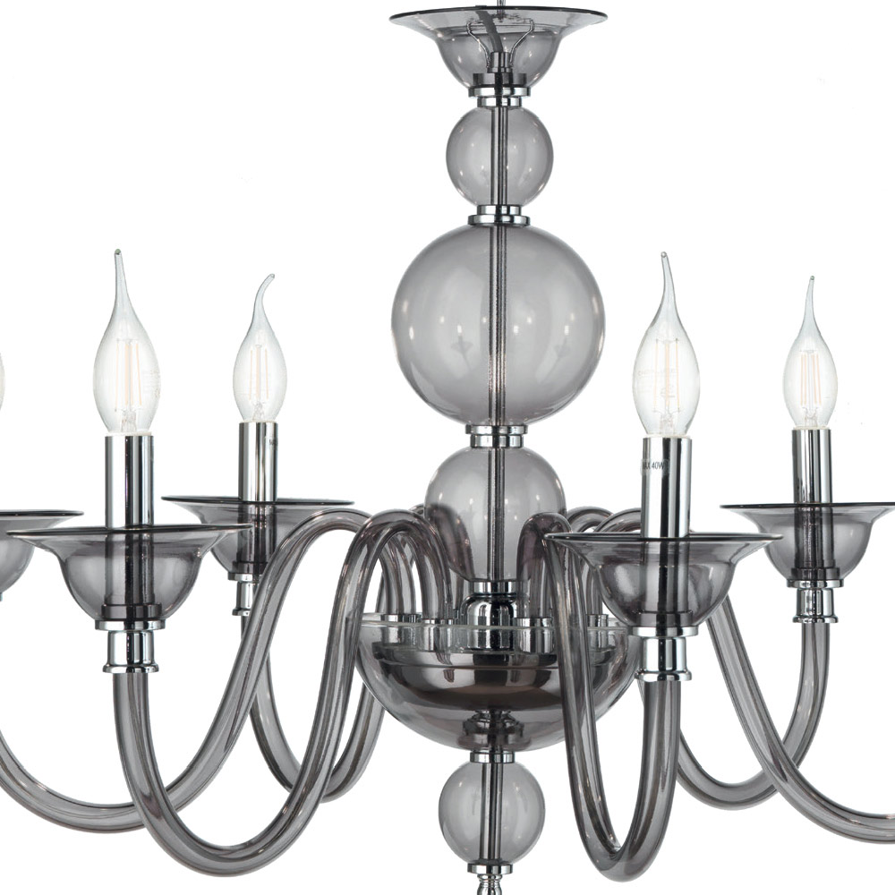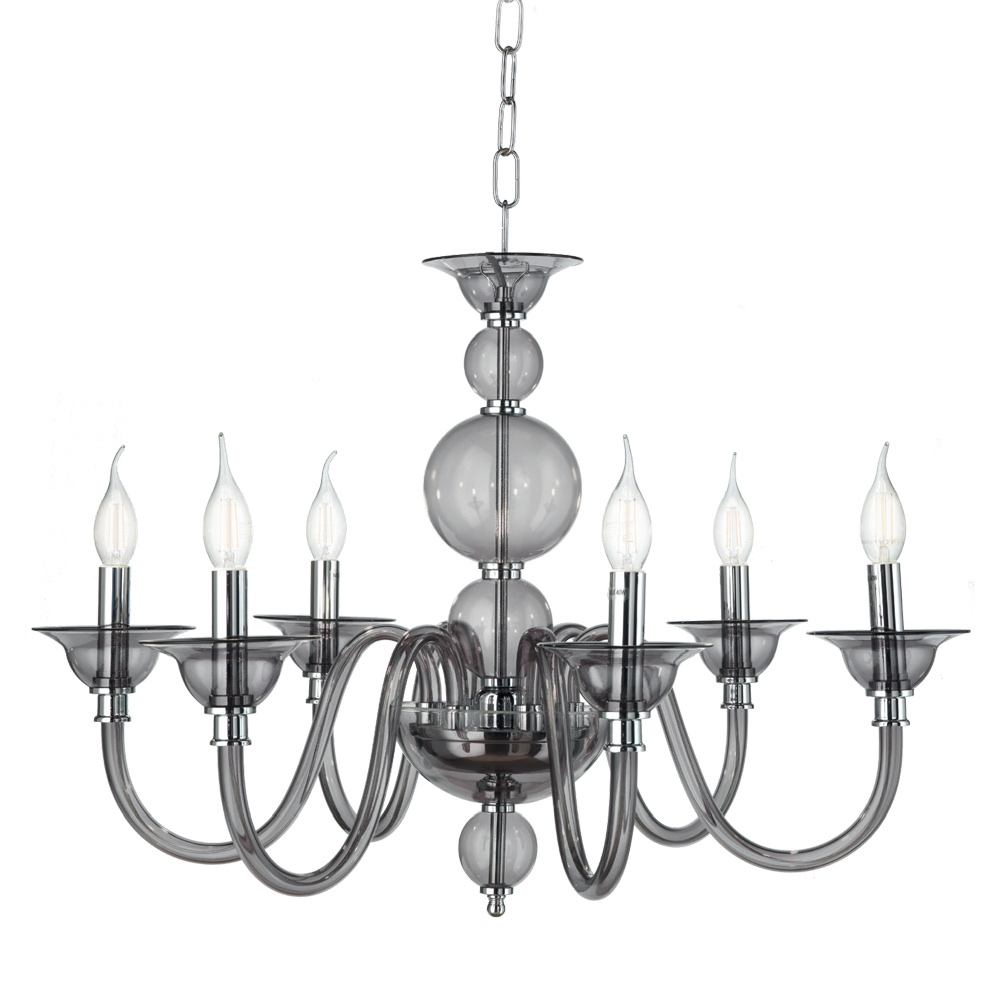 Klassischer 6-flammiger Kronleuchter aus verchromtem Metall und handgefertigtem Rauchglas, hergestellt in Italien.