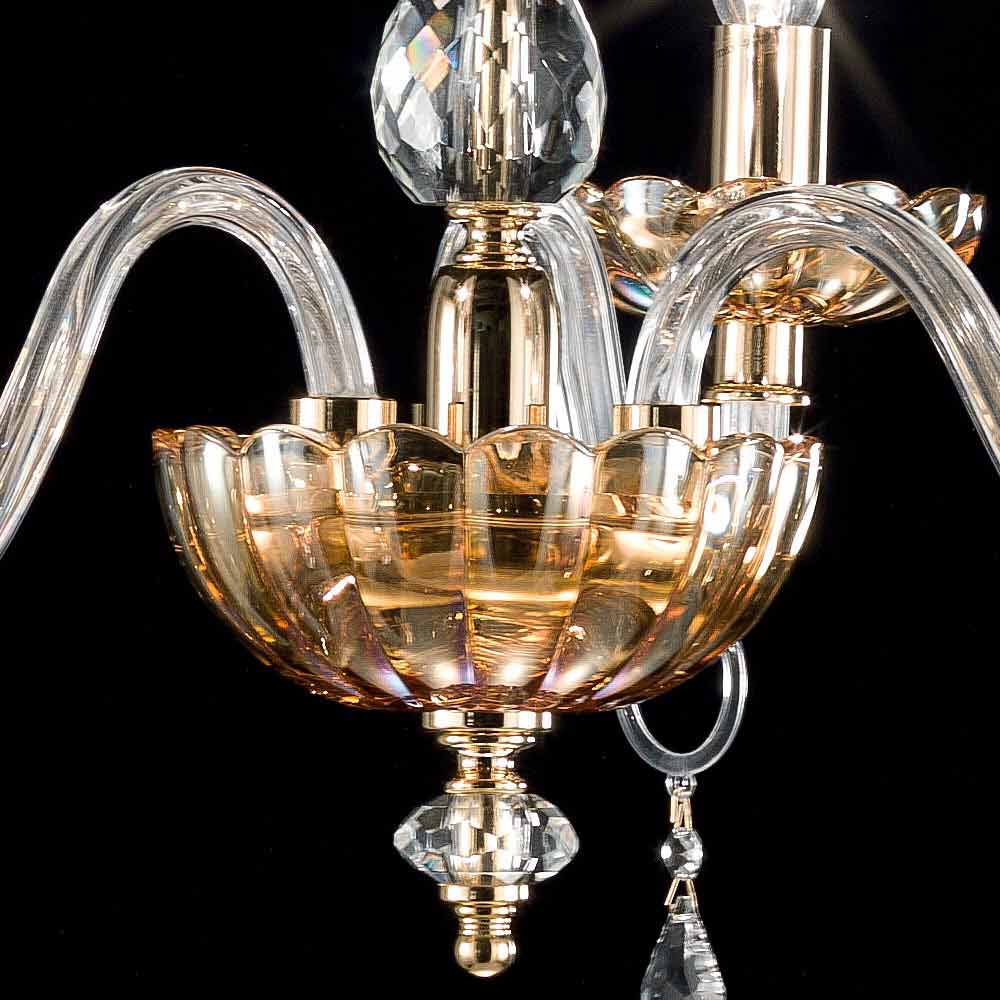 Klassischer Kronleuchter aus Kristall und Glas mit 3 Belle-Lichtern, hergestellt in Italien Hängelampe aus bernsteinfarbenem Glas und Kristall mit Goldfinish. Leuchtmittel: 3 x E14 40 W Leuchtmittel nicht im Lieferumfang enthalten.