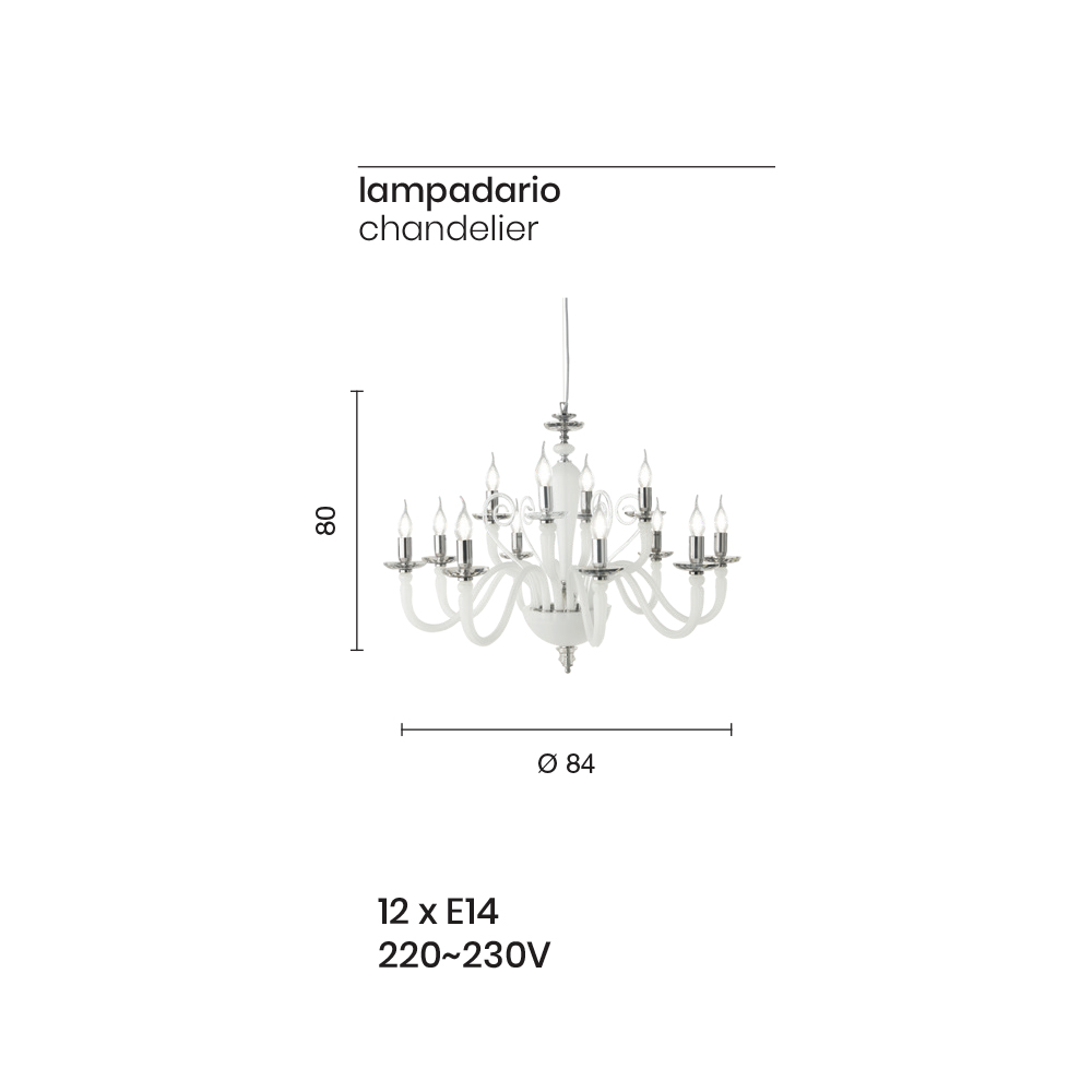 Dieser 12-flammige Kronleuchter zeichnet sich durch ein klassisches, raffiniertes und elegantes Design aus.