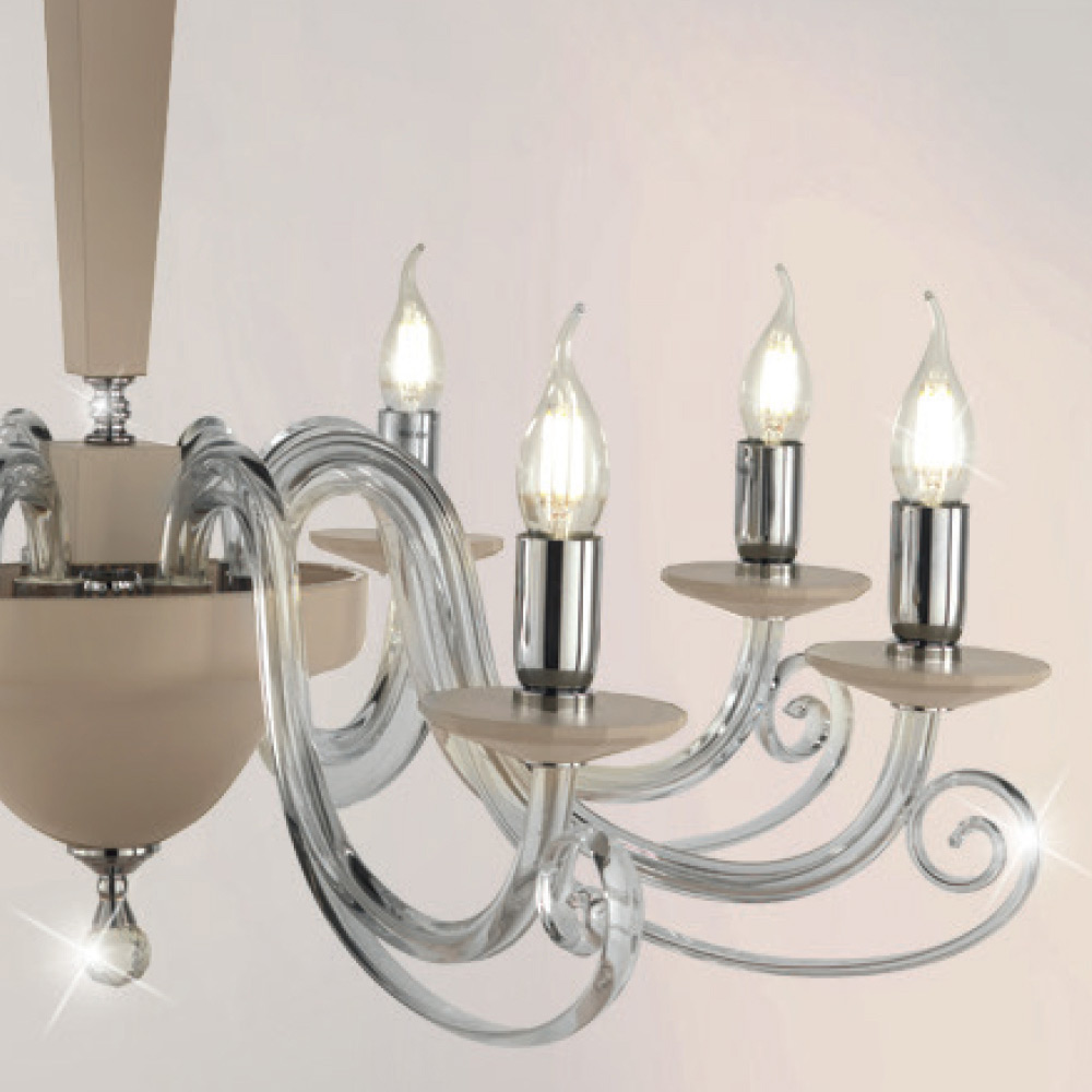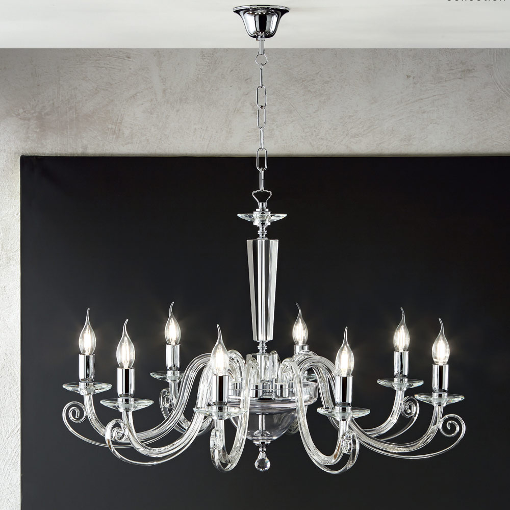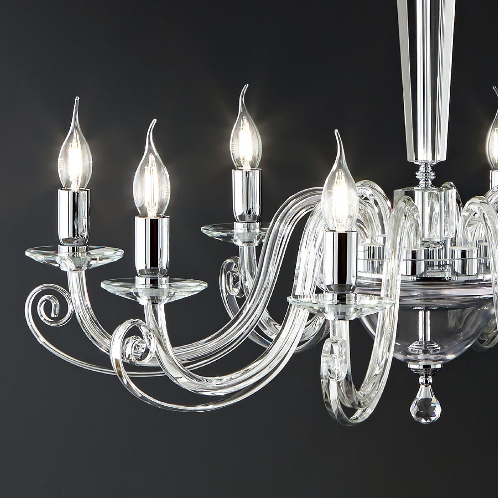Handgefertigter Kronleuchter aus Glas und Kristall, klassisches Design, hergestellt in Italien.