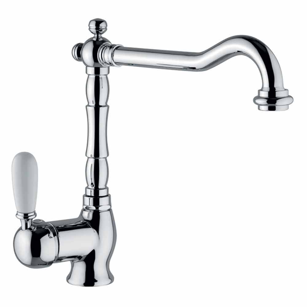 Küchenspüle Mischer in Italien in Messing komplett mit einstellbarem antikem Ausguss gemacht. Linien mit klassischem Geschmack treffen auf die Eleganz von Messing und seine wundervollen Oberflächen und schaffen so ein raffiniertes Element, das die Einrichtung jeder Küche revolutionieren kann und einen raffinierten und klassischen Touch verleiht, der perfekt für Umgebungen mit traditionellem sowie modernem und modernem Stil geeignet ist . Das Produkt sorgt auch für zusätzliche Aufmerksamkeit für die Umwelt, indem es eine Art Patrone anbietet, die genau zum Energiesparen entwickelt und hergestellt wurde. Es ist ES definiert und liefert kaltes Wasser, wenn der Hebel in der Mittelstellung angehoben wird, wodurch die Anforderung von heißem Wasser an den Kessel vermieden wird und somit eine Energieeinsparung ermöglicht wird.