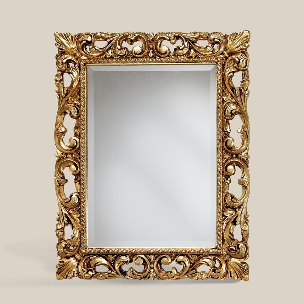 Klassischer rechteckiger Spiegel mit Blattgoldrahmen Made in Italy.