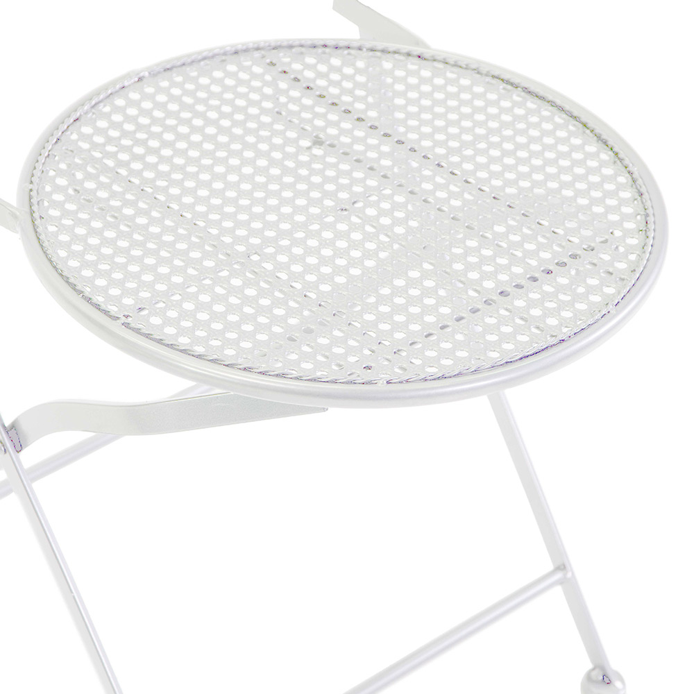 Das Metallfinish und der Rahmen machen ihn wetterfest, ideal für den Einsatz im Freien. Das kreuzförmige Detail auf der Sitzfläche sorgt nicht nur für Stil, sondern auch für Komfort und Halt.