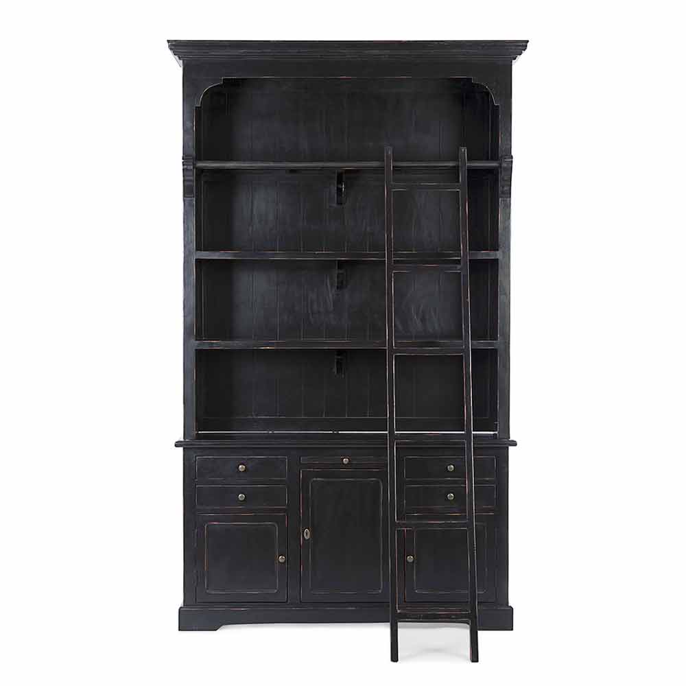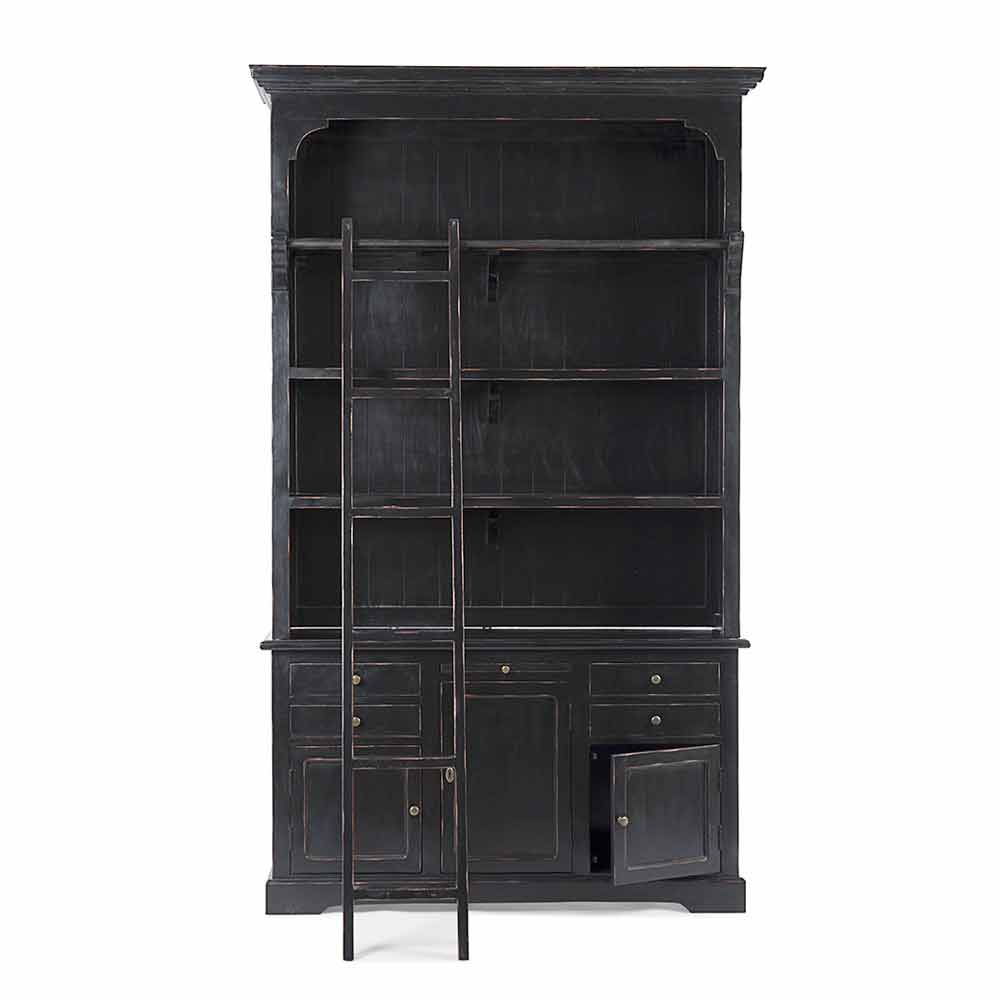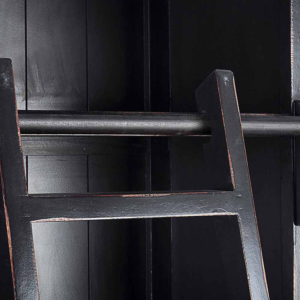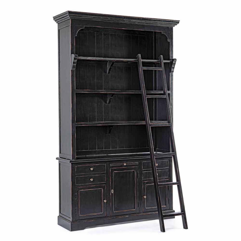 Struktur in Mangoholz , Rücken und Seiten in MDF . Dekorative Leiter aus Mangoholz. Eingelegtes und antikes Finish auf Nitrocellulosebasis. Griffe aus Gusseisen . Zusammenzubauen.