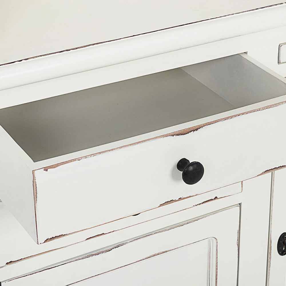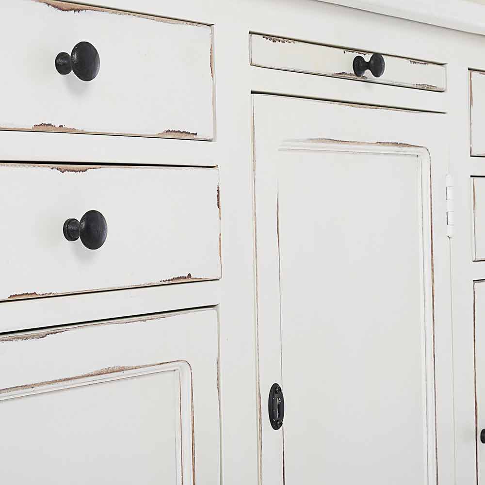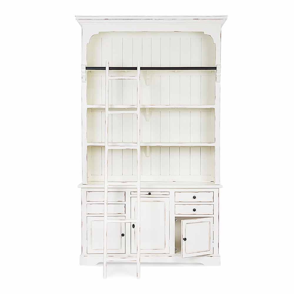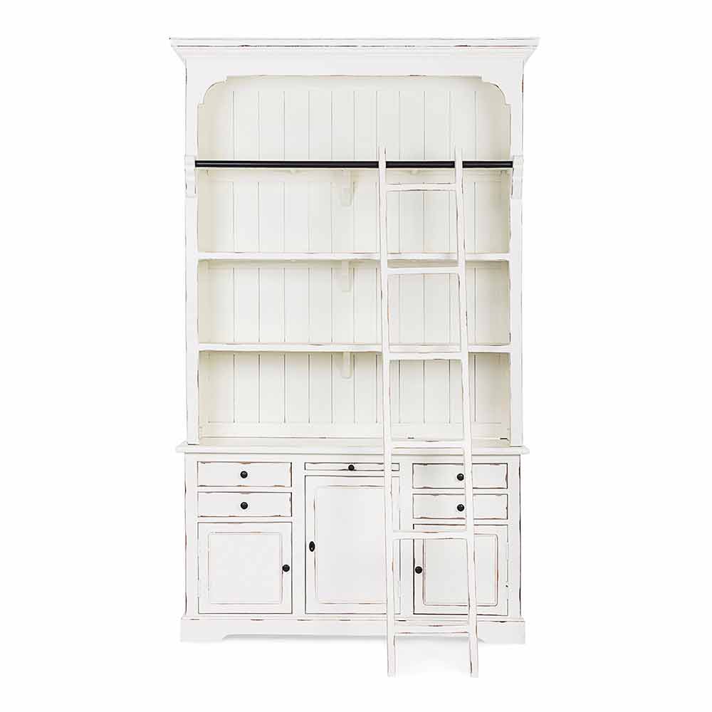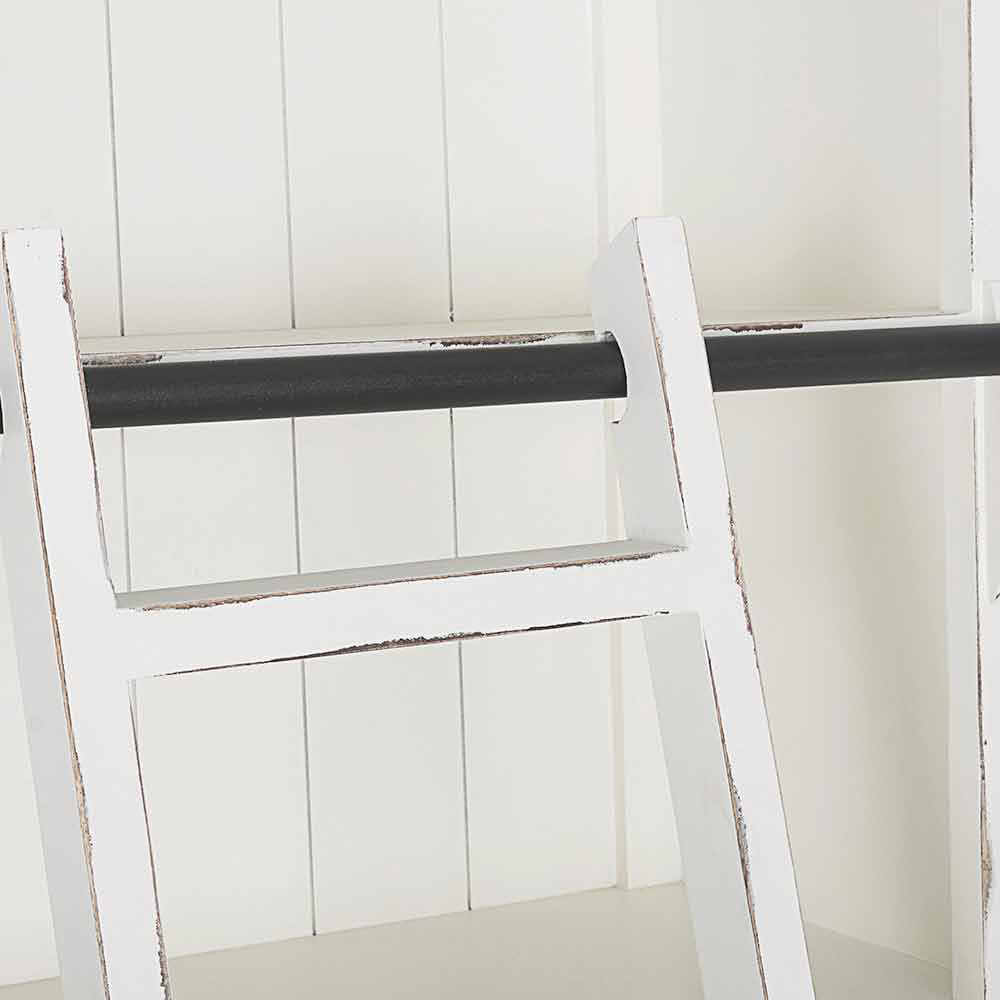 Struktur in Mangoholz , Rücken und Seiten in MDF . Dekorative Leiter aus Mangoholz. Eingelegtes und antikes Finish auf Nitrocellulosebasis. Griffe aus Gusseisen . Zusammenzubauen.