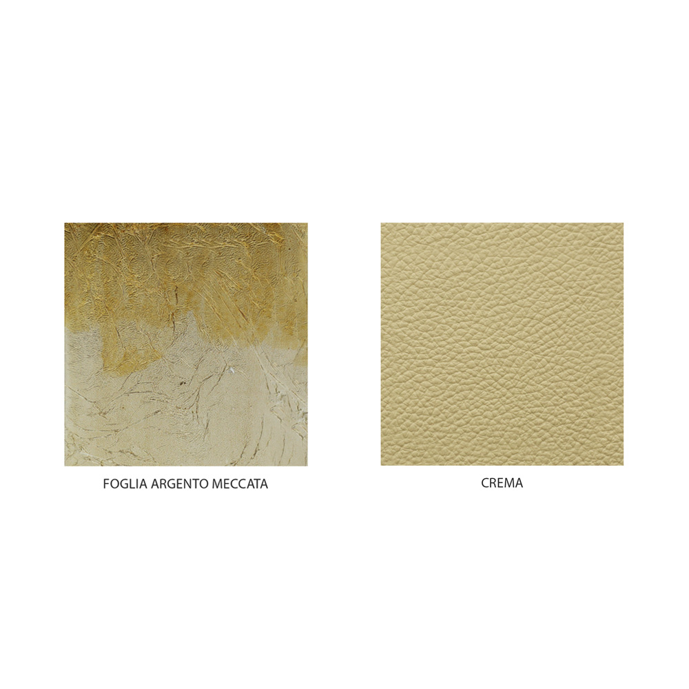 Doppelbett mit passendem Kopf- und Fußteil aus massivem Eisen in handgefertigter Blattlackierung und Polsterung aus echtem Leder in Creme-Optik. Der Holm ist 40 x 20 cm gebogen. Eleganz und Majestät sind die Schlüsselwörter, die die Ausführungen dieses Produkts mit einem klassischen und zeitlosen Stil beschreiben. Das Schlafzimmer wird durch eine einzigartige und eindrucksvolle Atmosphäre bereichert, die bei denen, die es betreten, ein unvergessliches Gefühl von Königlichkeit erzeugt. Qualität und Komfort sind dank der Wahl der für die Konstruktion verwendeten Materialien immer gewährleistet.