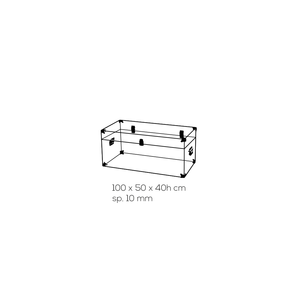 Dieser Koffer besteht vollständig aus gefaltetem Acrylglas, erhältlich in 2 Varianten mit einer Dicke von 10 mm, vollständig UV-verklebt mit edlen verchromten Stahloberflächen.