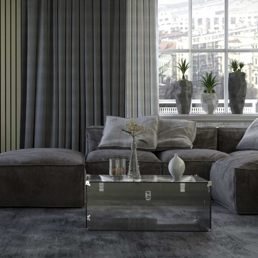 Koffer aus transparentem oder geräuchertem Acrylglas und modernem Stahl - Dante