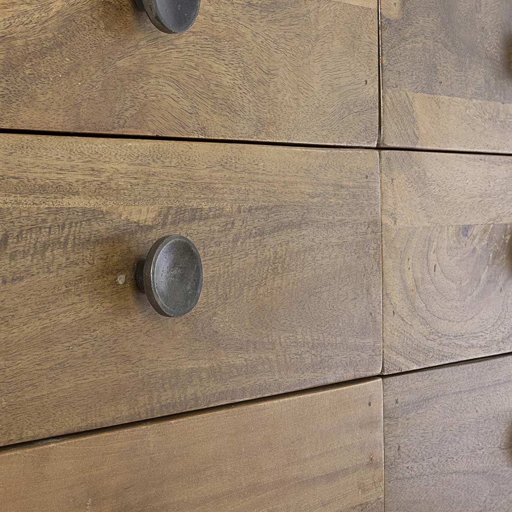 Kommode aus Mangoholz mit 6 Schubladen im Vintage-Design.