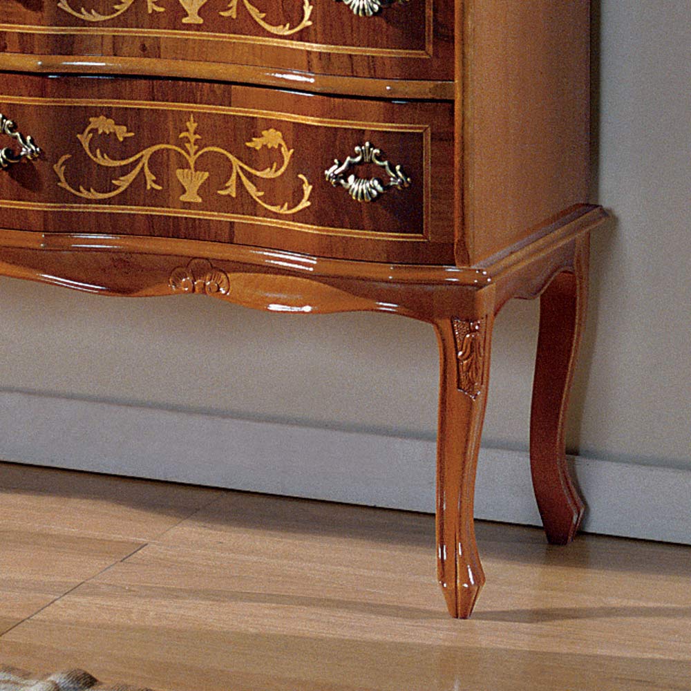 Kommode im klassischen Stil aus edlem poliertem Walnussholzmitgoldenen Intarsien . Dieses praktische und raffinierte Möbelstück mit 6 Schubladen wird vollständig in Italien hergestellt und von erfahrenen Handwerksmeistern handgefertigt, mit Geschick und Geschmack für Eleganz vollendet. Die Produktion erfolgt unter Verwendung hochwertiger Materialien und mit der größten Sorgfalt und Professionalität, die die Produkte Made in Italyauszeichnet .