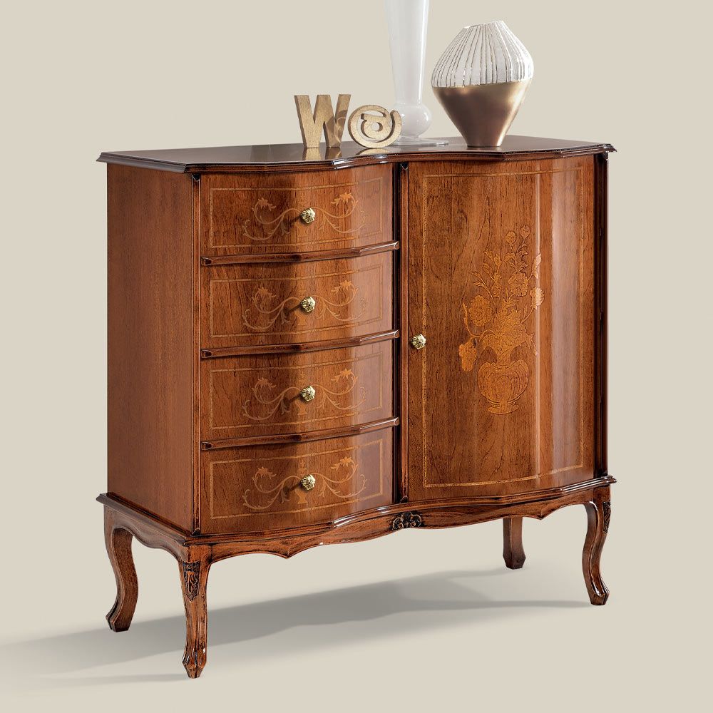 Kommode im klassischen Stil mit Tür und 4 Schubladen Made in Italy.