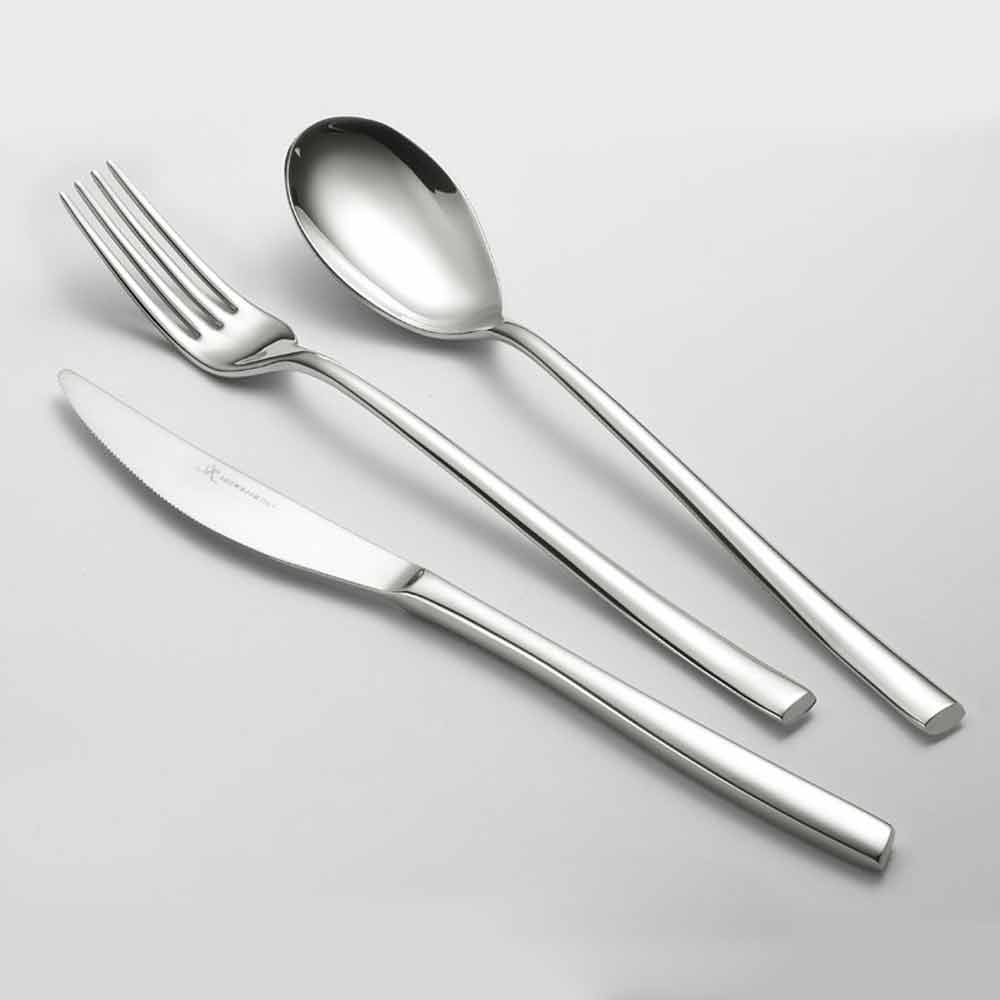 Es handelt sich um eine Sammlung von Besteck aus 18/10 Edelstahl mit 18% Chrom und 10% Nickel, die eine hervorragende Korrosionsbeständigkeit und eine einfache Reinigung mit einem hervorragenden Hygienekoeffizienten garantieren.
