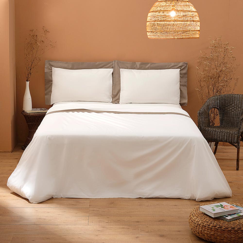 Doppelbettset aus 100 % Baumwolle mit 160 TC und 10 % Baumwollsatin mit 300 TC.