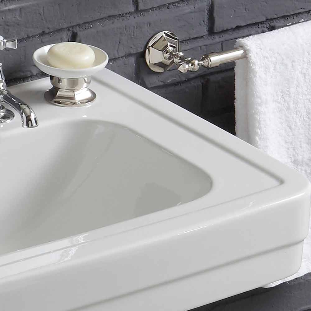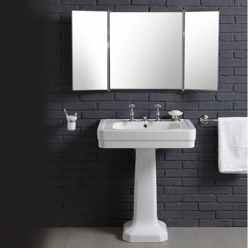 In der Komposition enthaltene Teile: - Waschbecken L. 60 cm x D. 51 cm - Säule L. 37,5 cm x T, 35 cm x H, 69 cm - 2 einzelne Wasserhähne - Ablassen und absaugen - Ablassen - Wandzahnbürstenhalter - Seifenhalter abstützen - 60 cm verchromte Messingstange - Dreiseitiger Klappspiegel cm. insgesamt 114 x 60