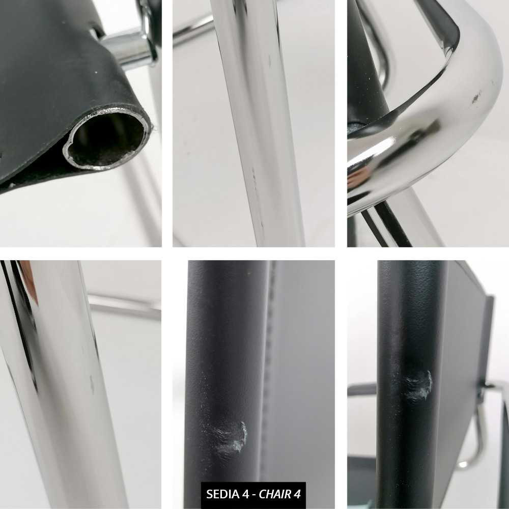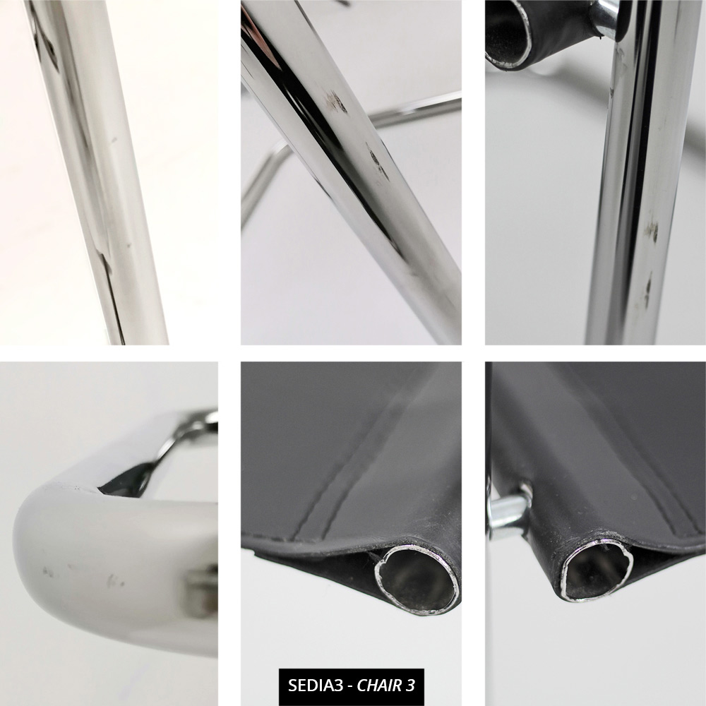 Der Cirillo -Stuhl mit Armlehnen für Besprechungs- oder Konferenzräume ist ideal, weil er all diese Eigenschaften vereint; er verfügt über ein verchromtes Metallgestell und einen Sitz, eine Rückenlehne und Armlehnen aus schwarzem Kunstleder.