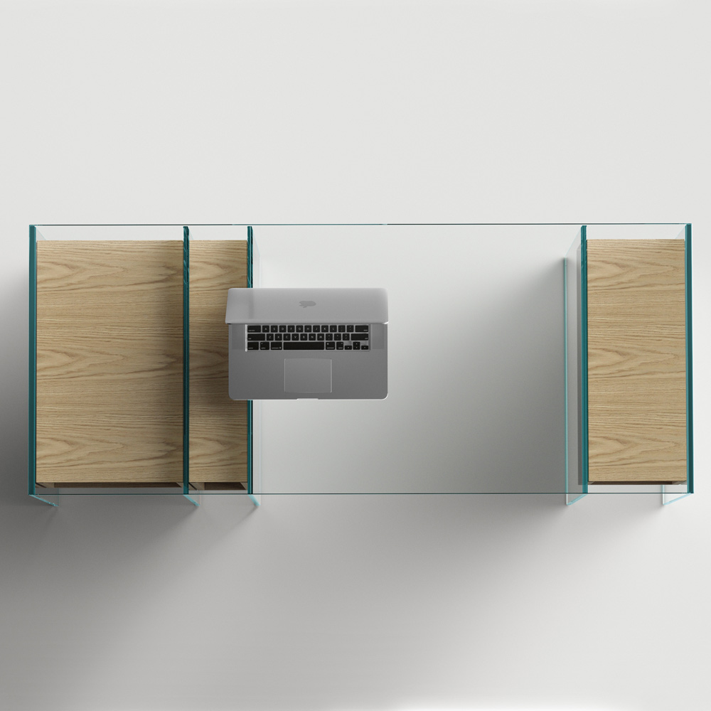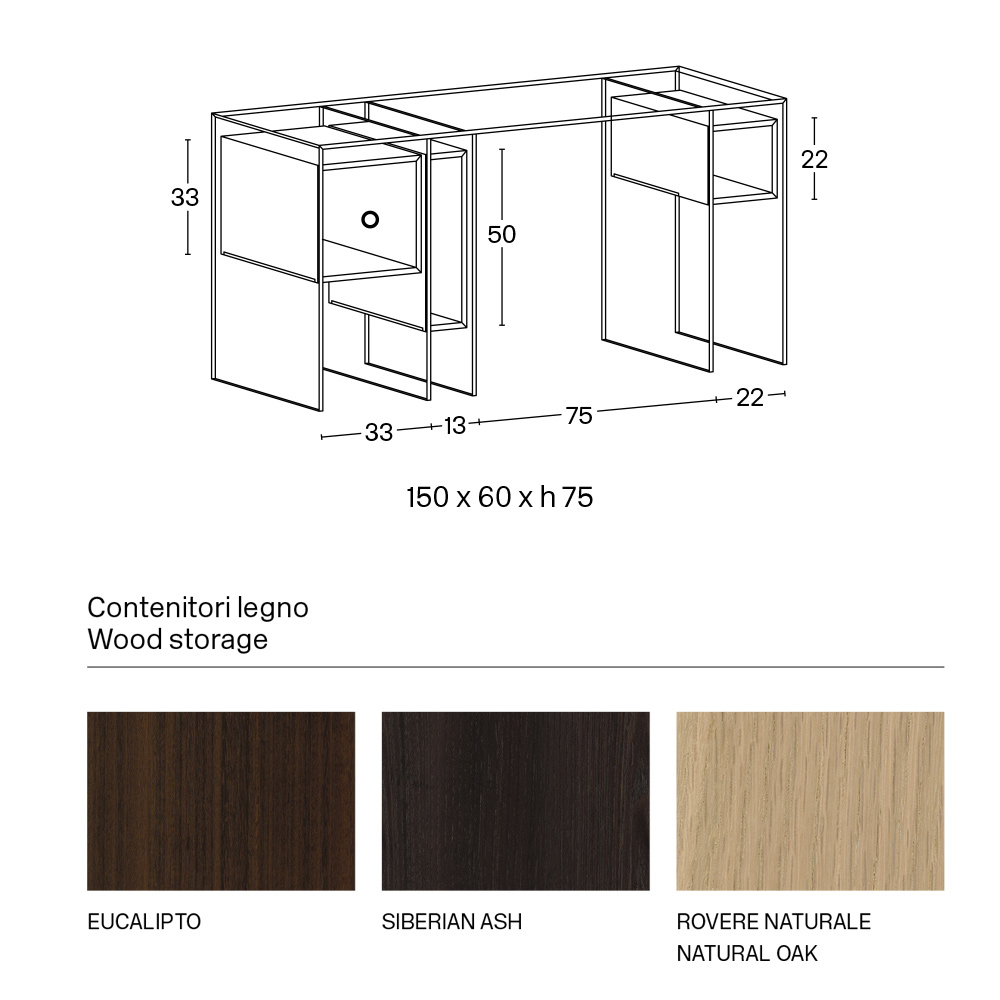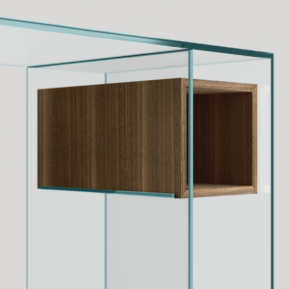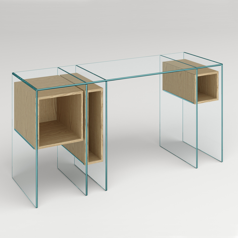 NB : die Konsole ist auch in der Version mit Rauchglas erhältlich. Es ist auch möglich, das 3er-Set Schubladen in einer passenden Ausführung (eingefügt in den linken Würfel) anzufordern.