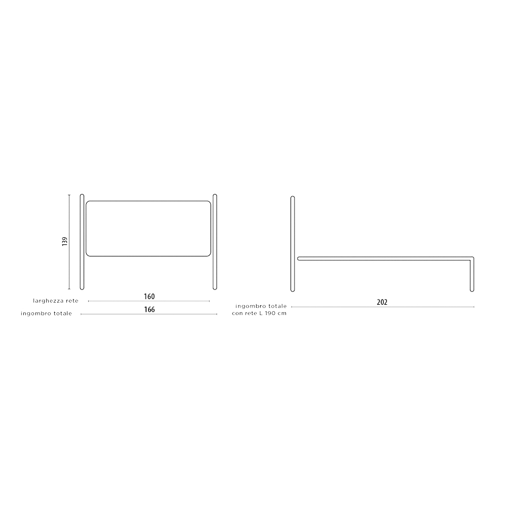 Kopfteil mit Bettrahmen, Magnum-Bettgestell: Länge 166 x Tiefe 202 x Höhe 139 cm - Bettgestell 160x190 cm
