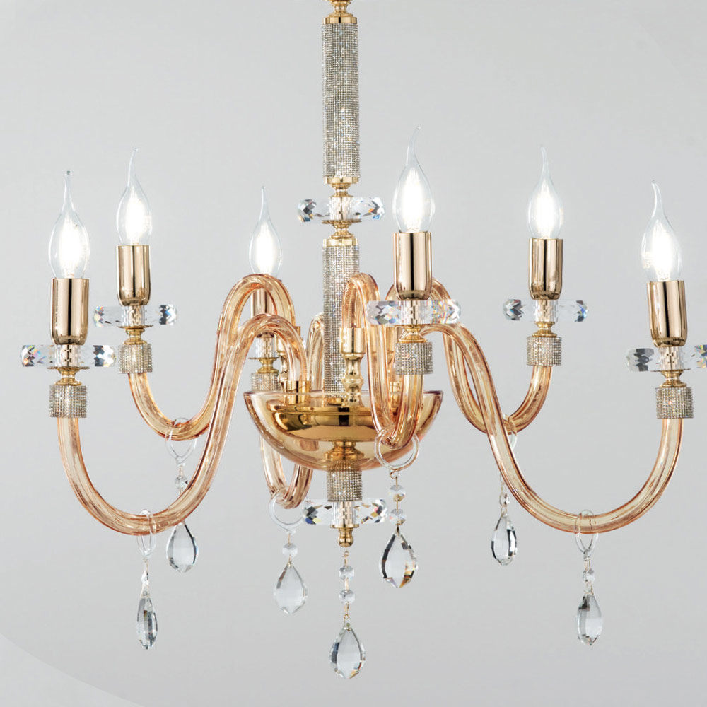 Kronleuchter 6 Lichter Klassisches italienisches Glas Handgefertigt Bernstein - Similo